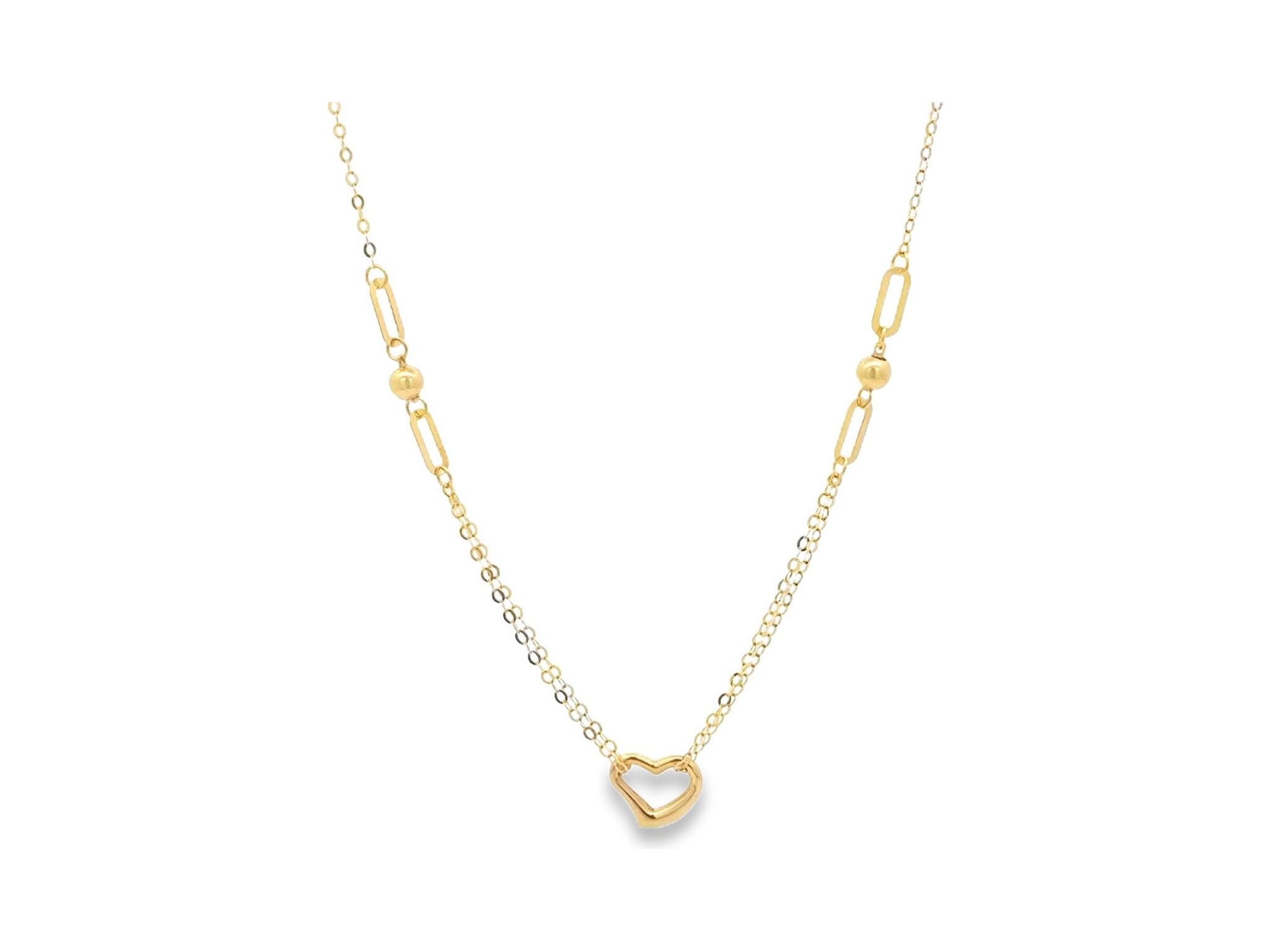 18K Yellow Gold Necklace with Open Heart Pendant and Oval Link Accents