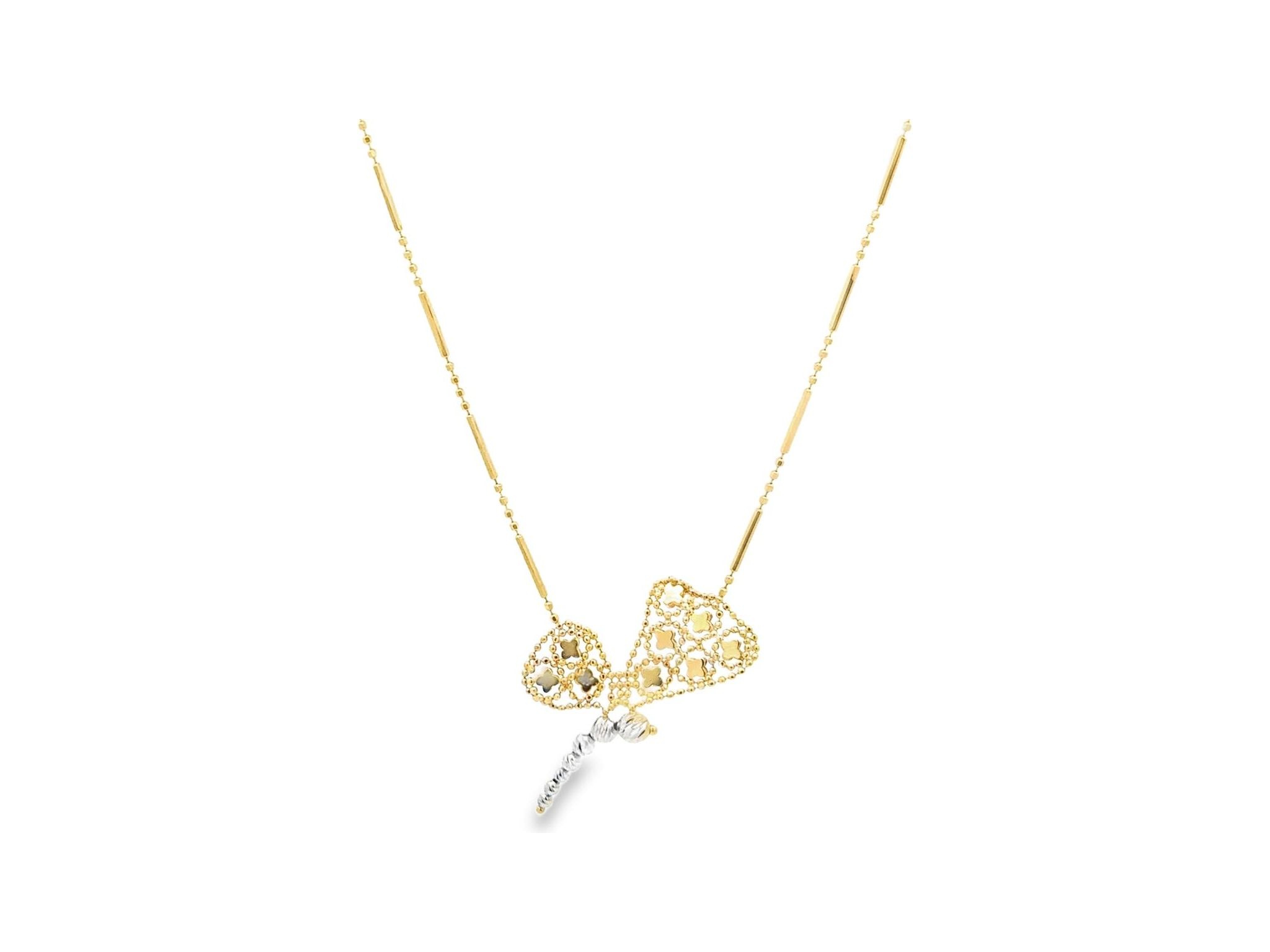 18K Yellow Gold Necklace with Butterfly Motif and Beaded Tail