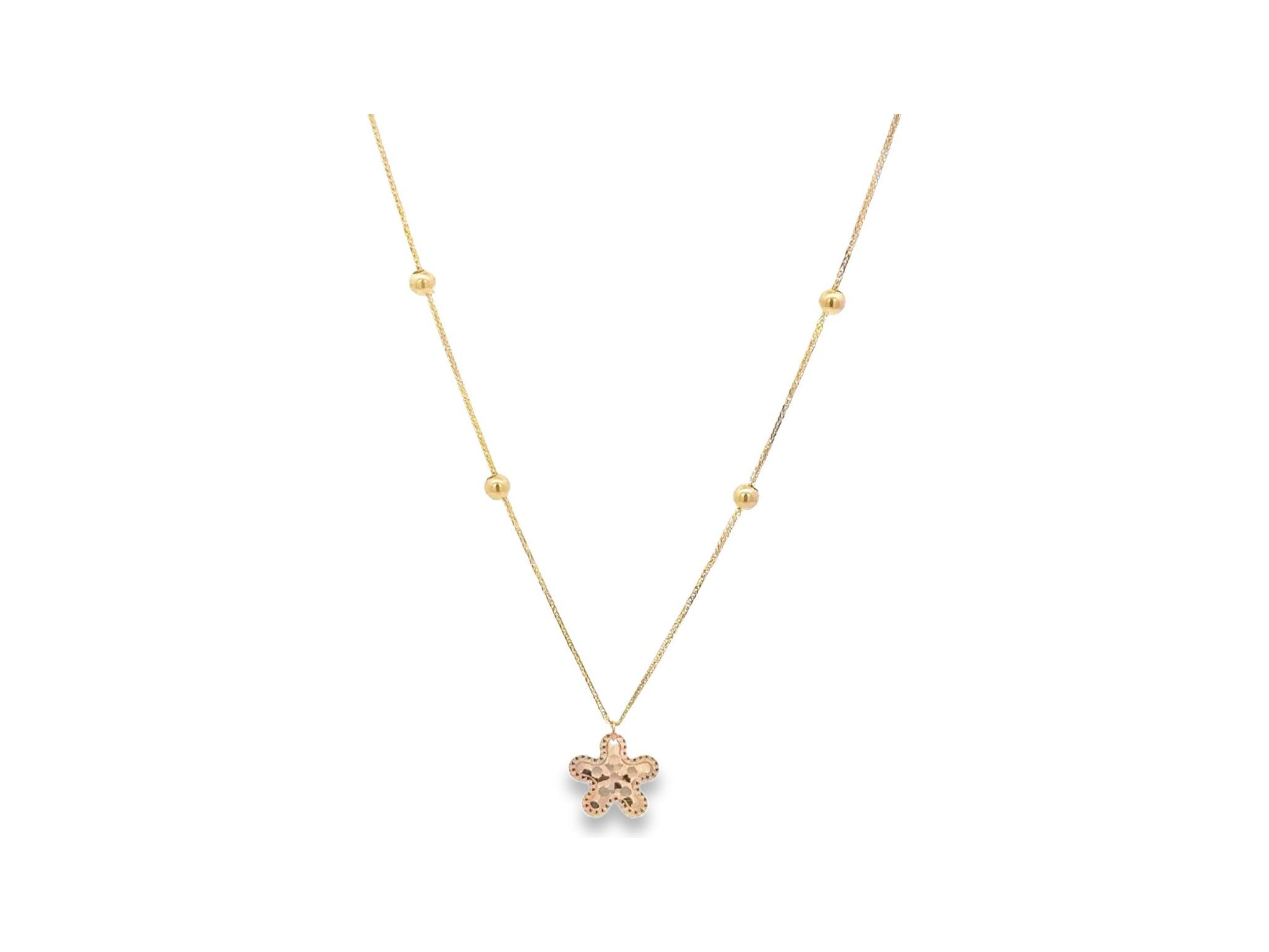 18K Yellow Gold Necklace with Openwork Flower Pendant and Beaded Chain