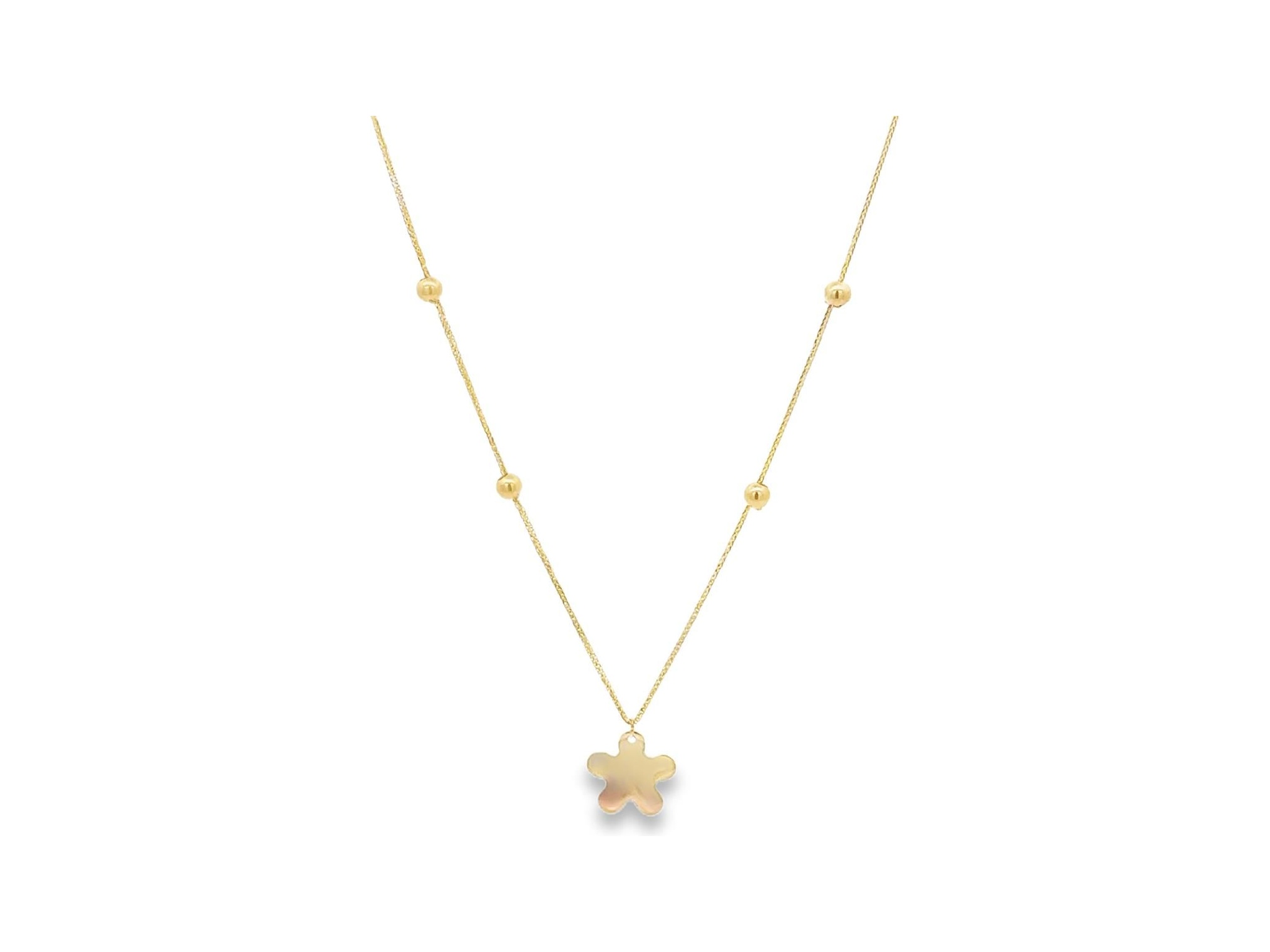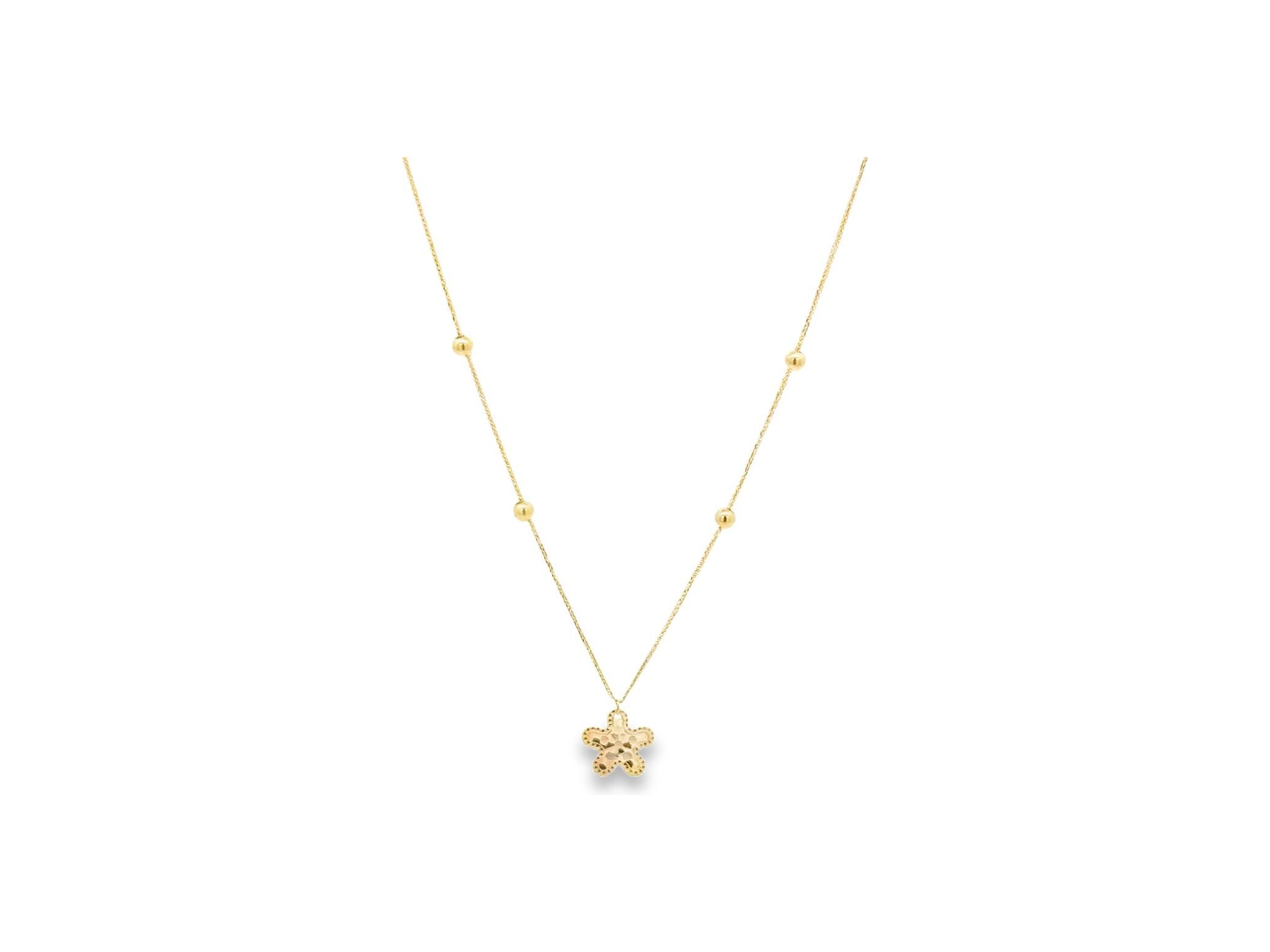18K Yellow Gold Necklace with Openwork Flower Pendant and Beaded Chain