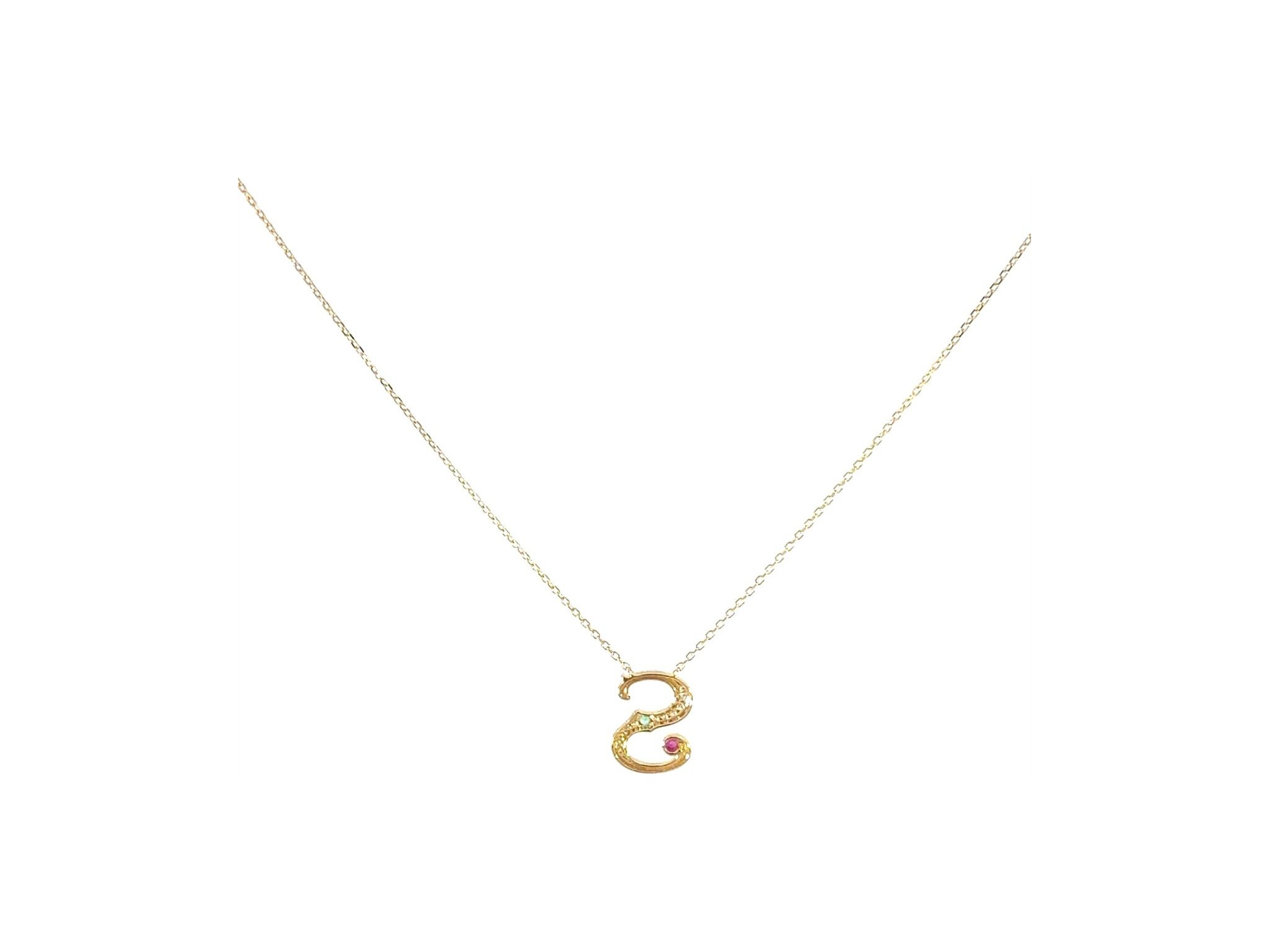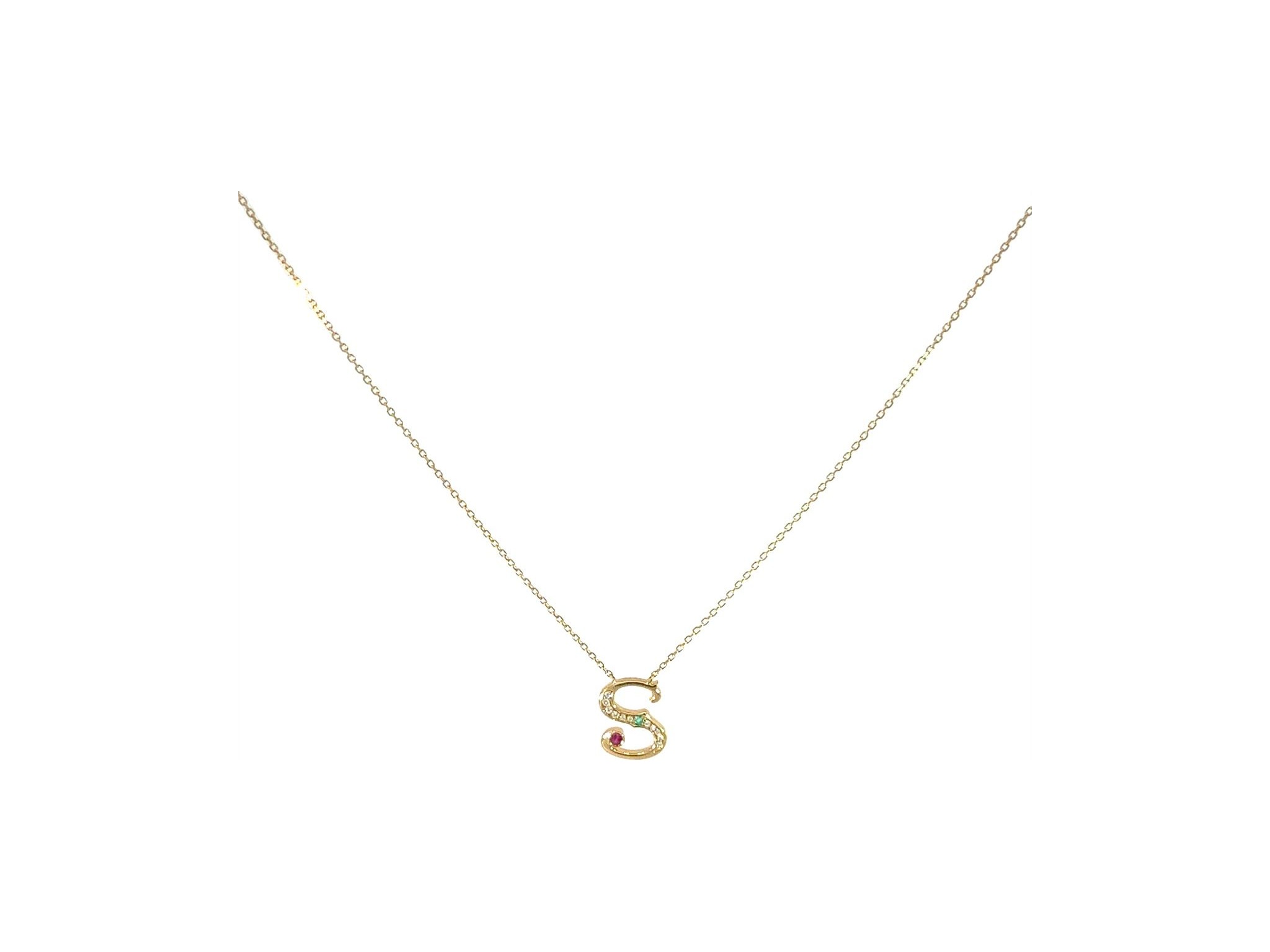 18K Yellow gold S necklcae with natural diamonds and emearlad and ruby