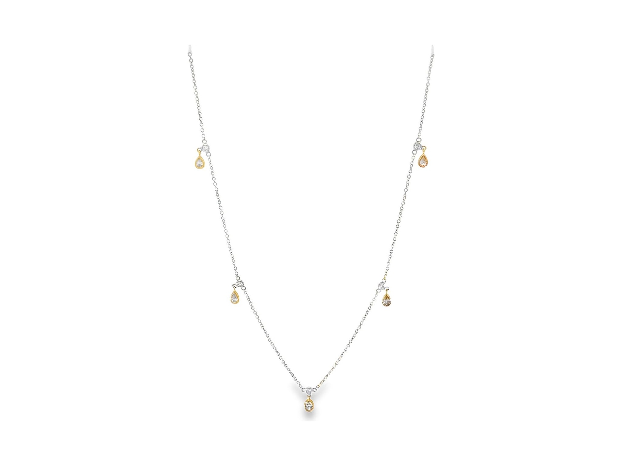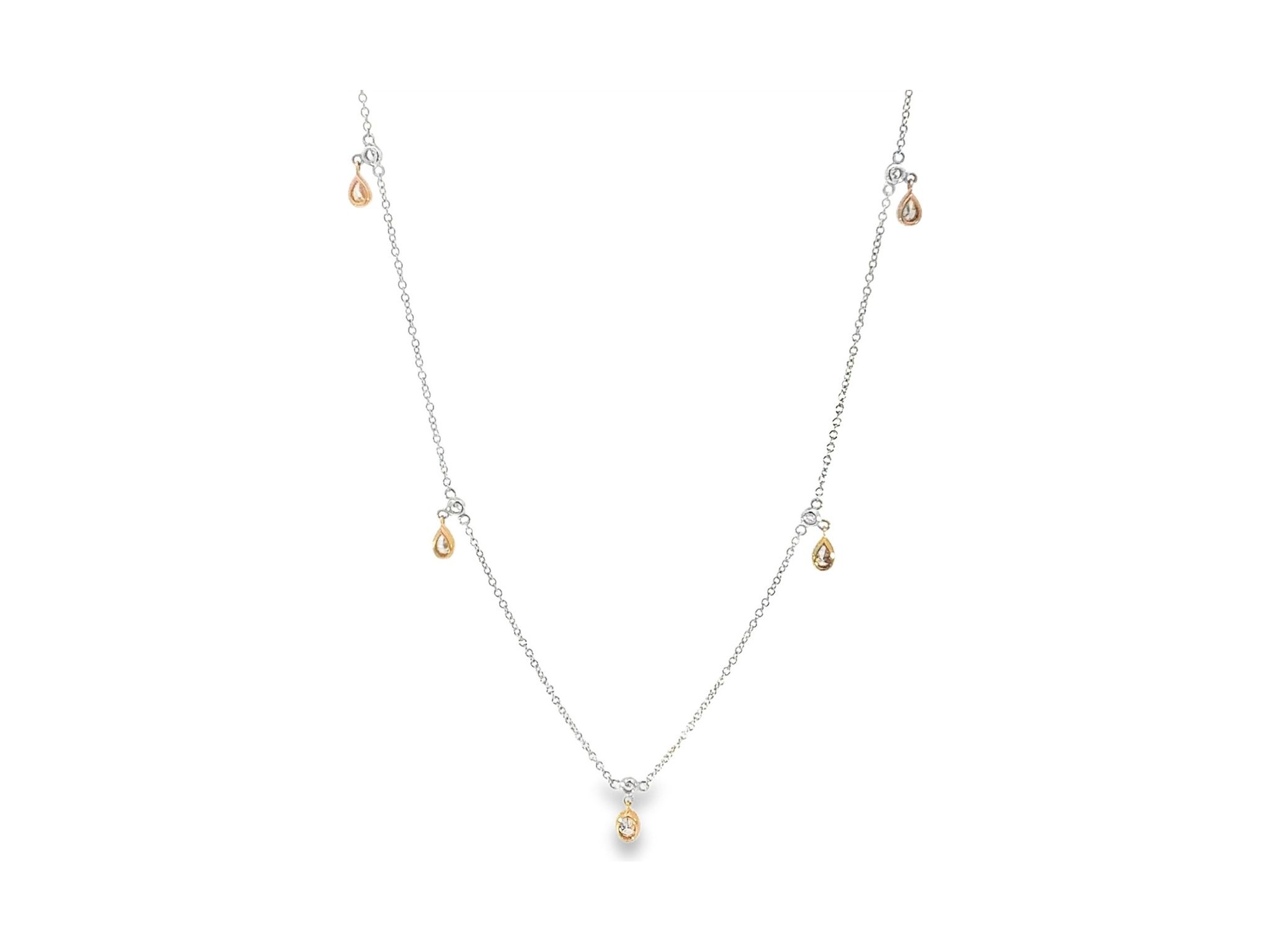 18K White Gold Necklace with All-Natural Diamond Oval & Pear Charms