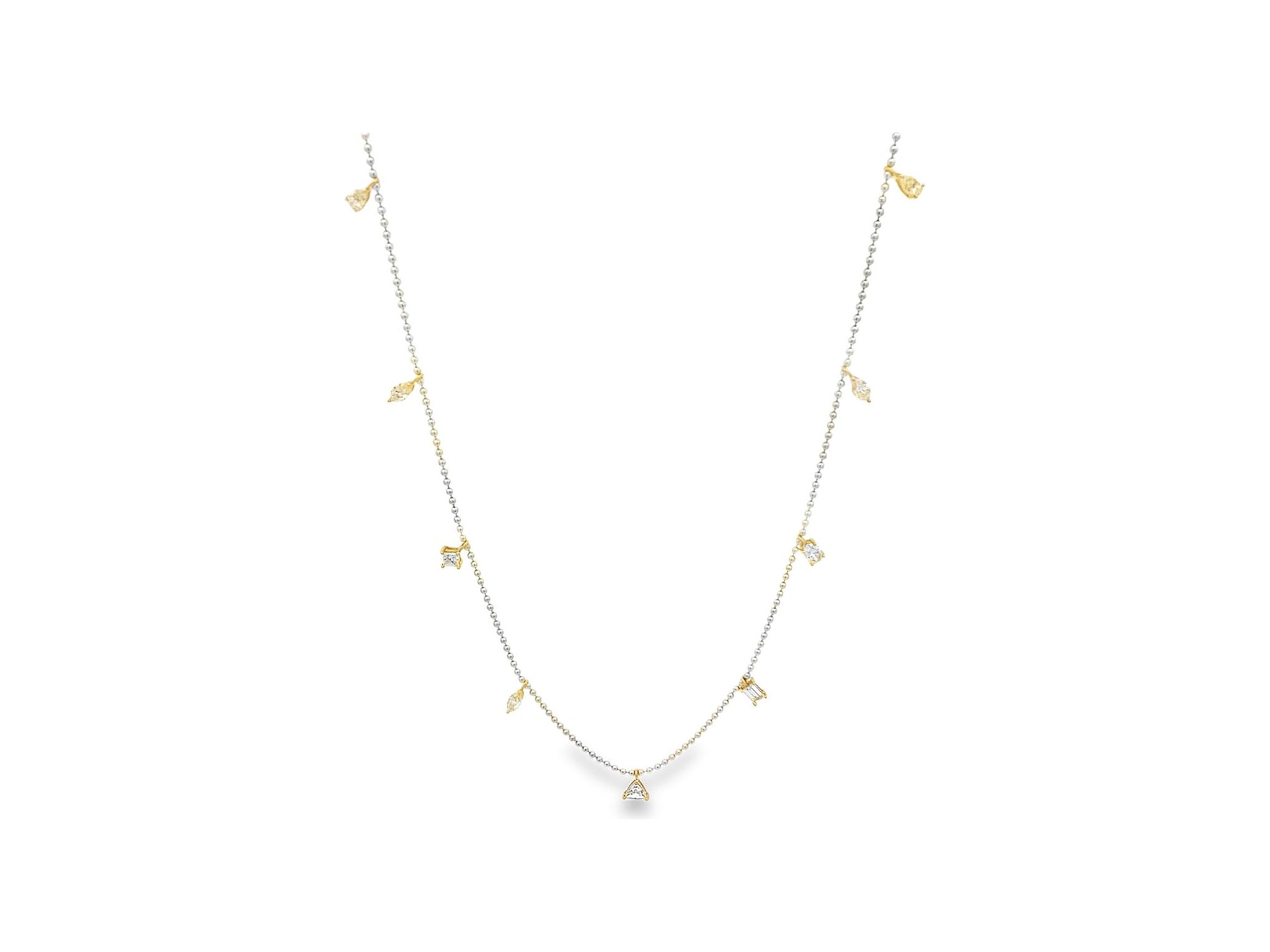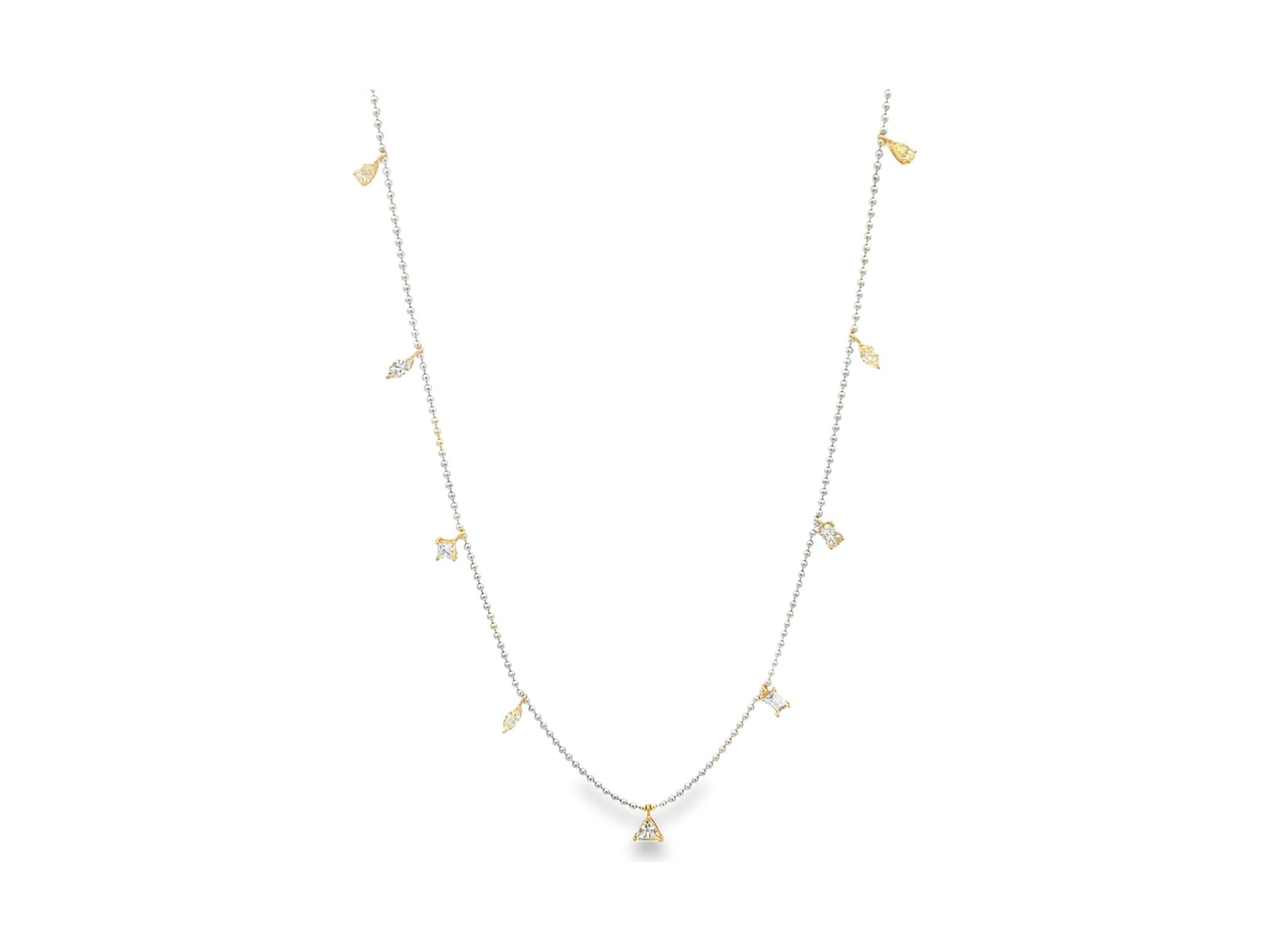 18K White Gold Chain Necklace with Mixed-Cut Natural Diamonds