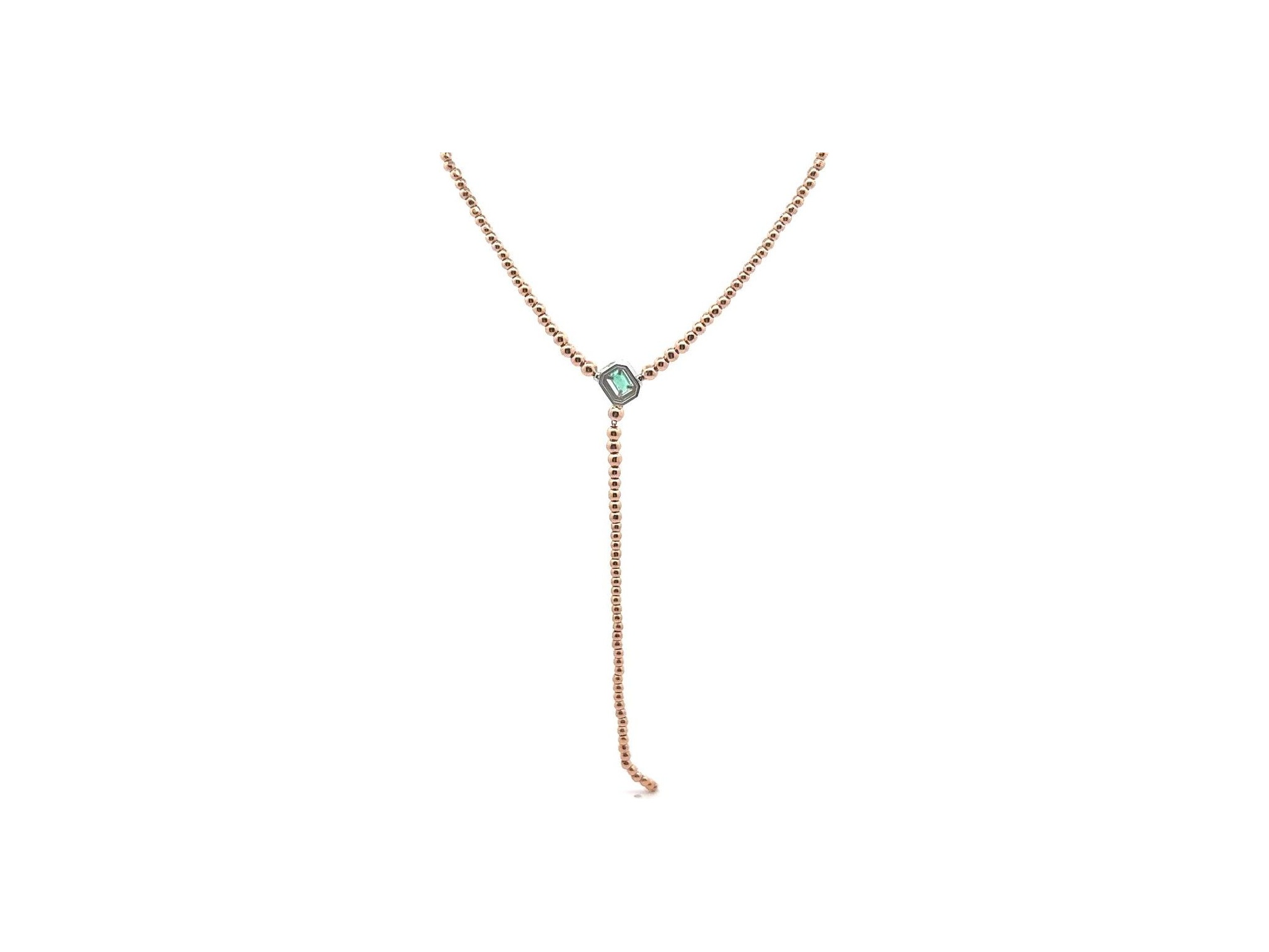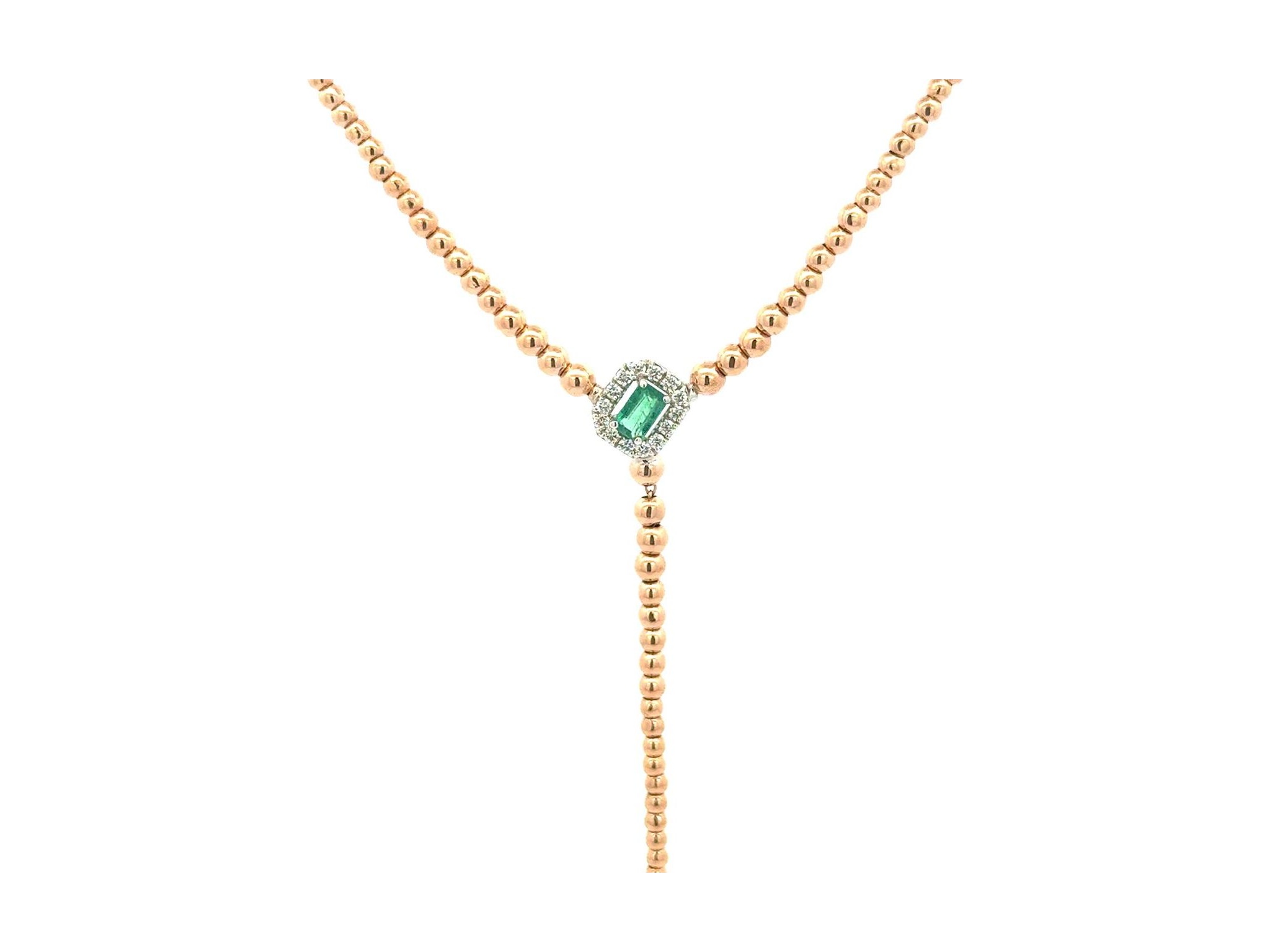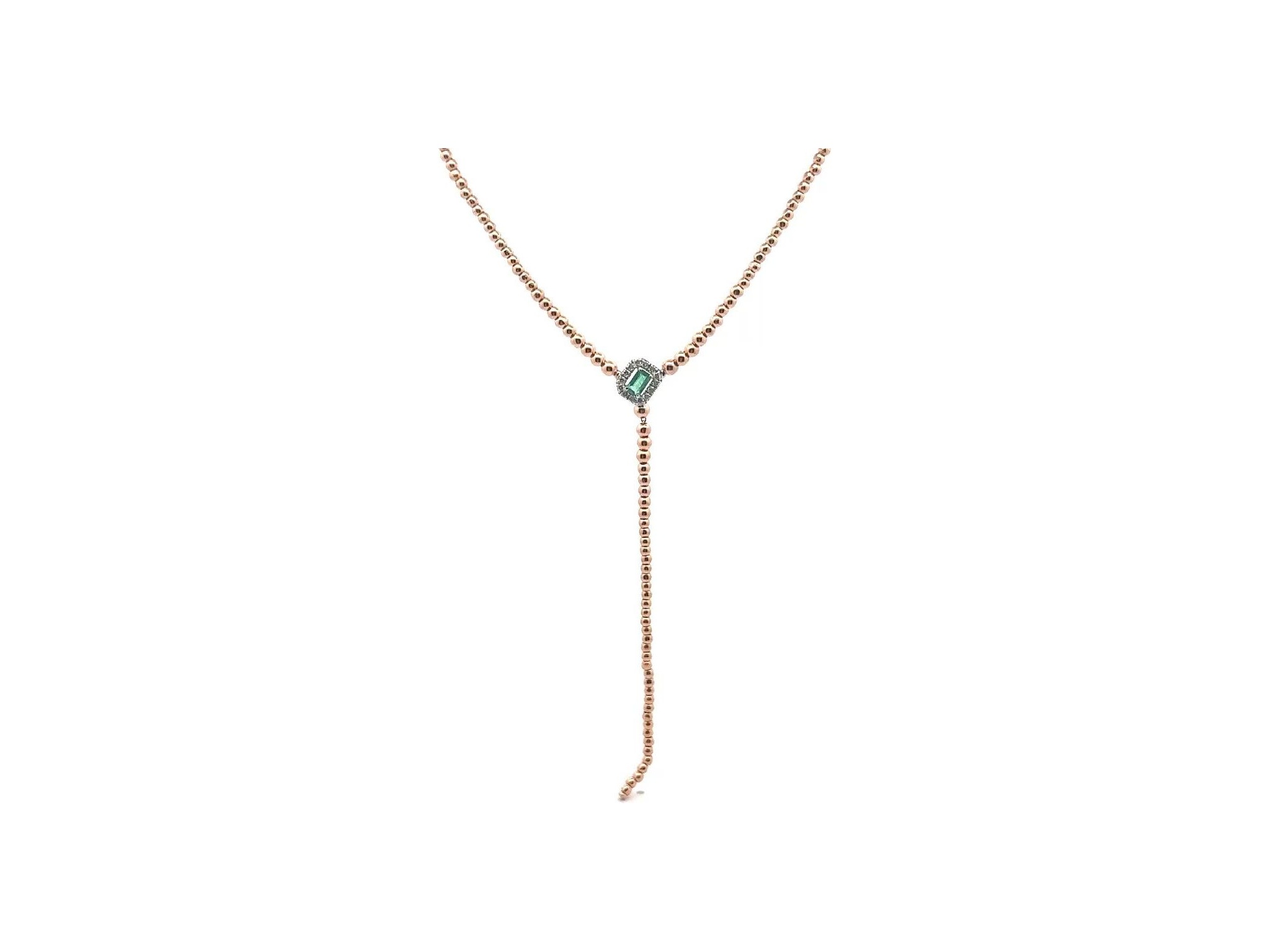 18K Rose Gold Necklace with Natural Emerald and Diamonds