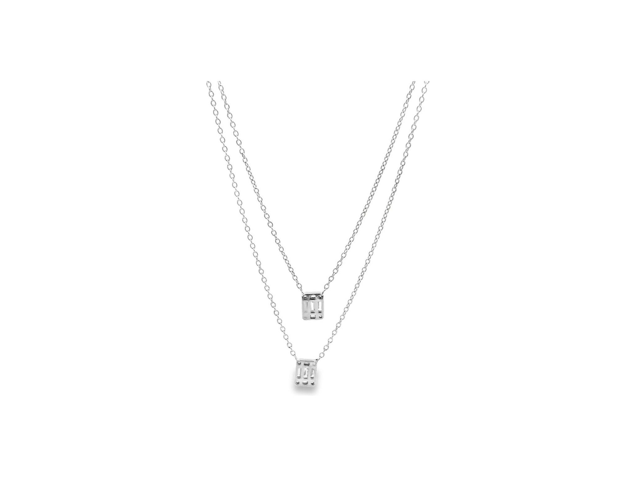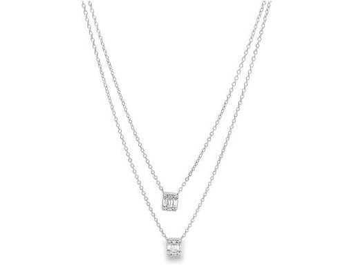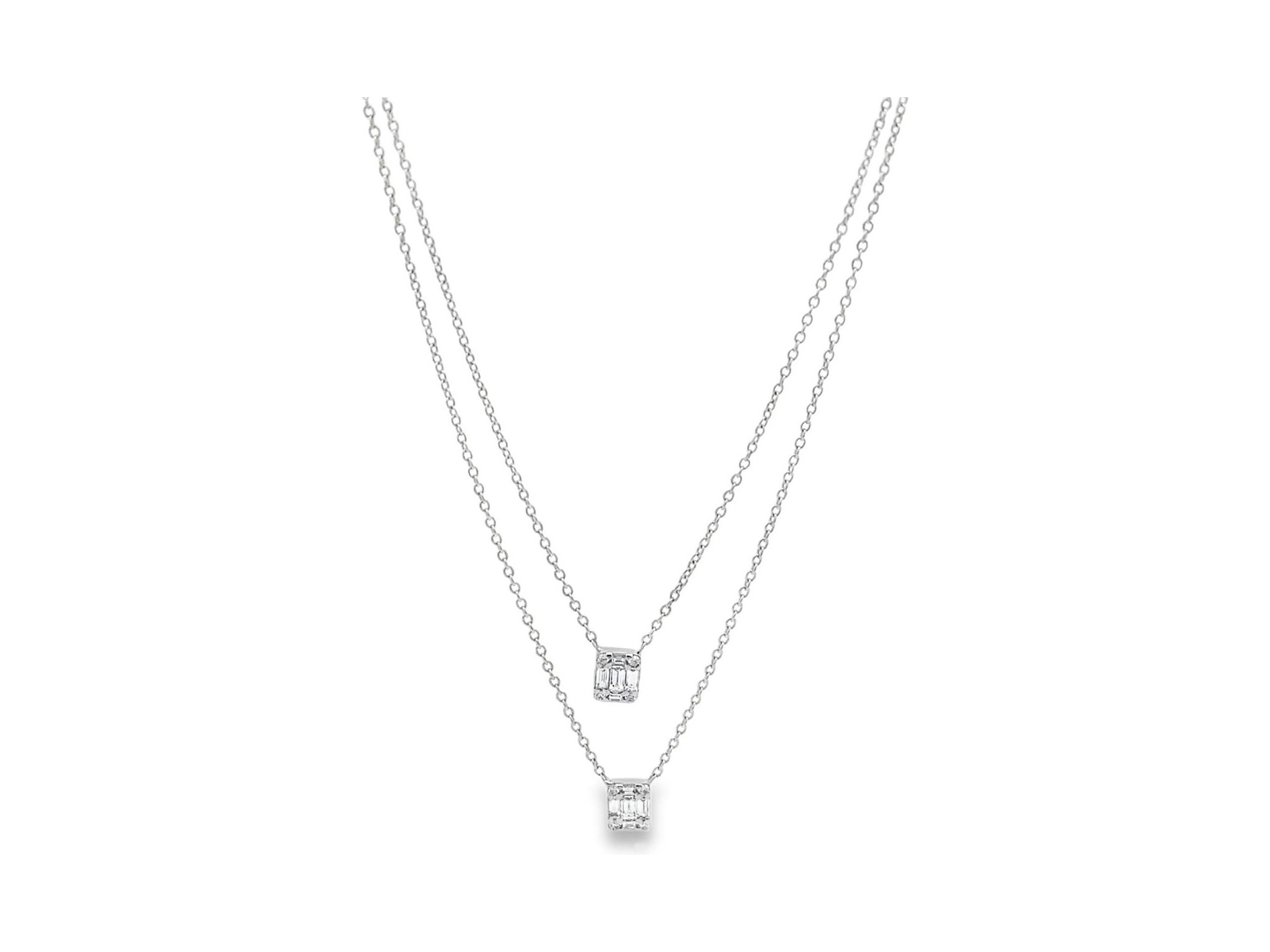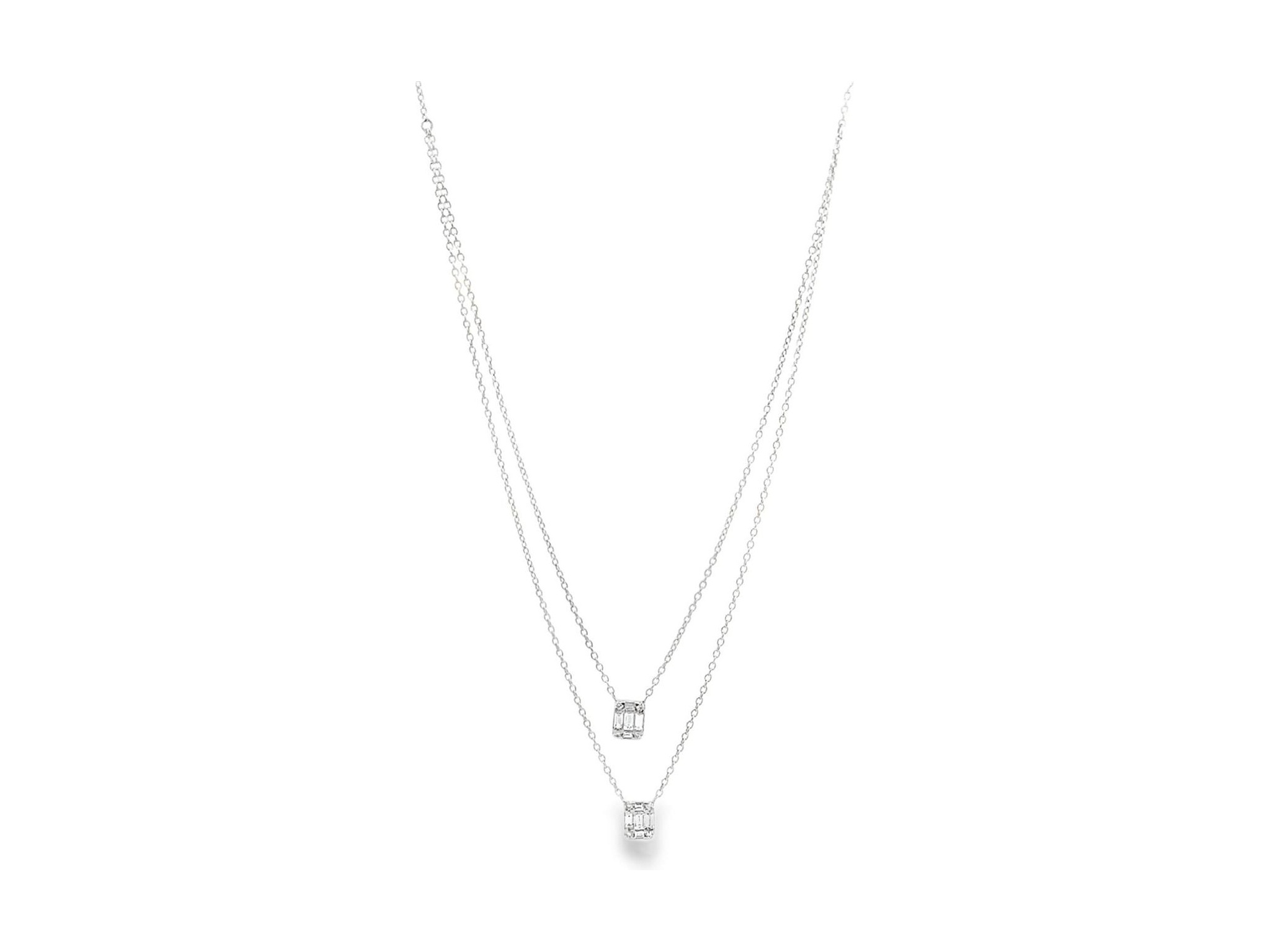 18K White Gold Double-Layer Necklace with Natural Baguette and Round Diamonds in Emerald-Style Setting