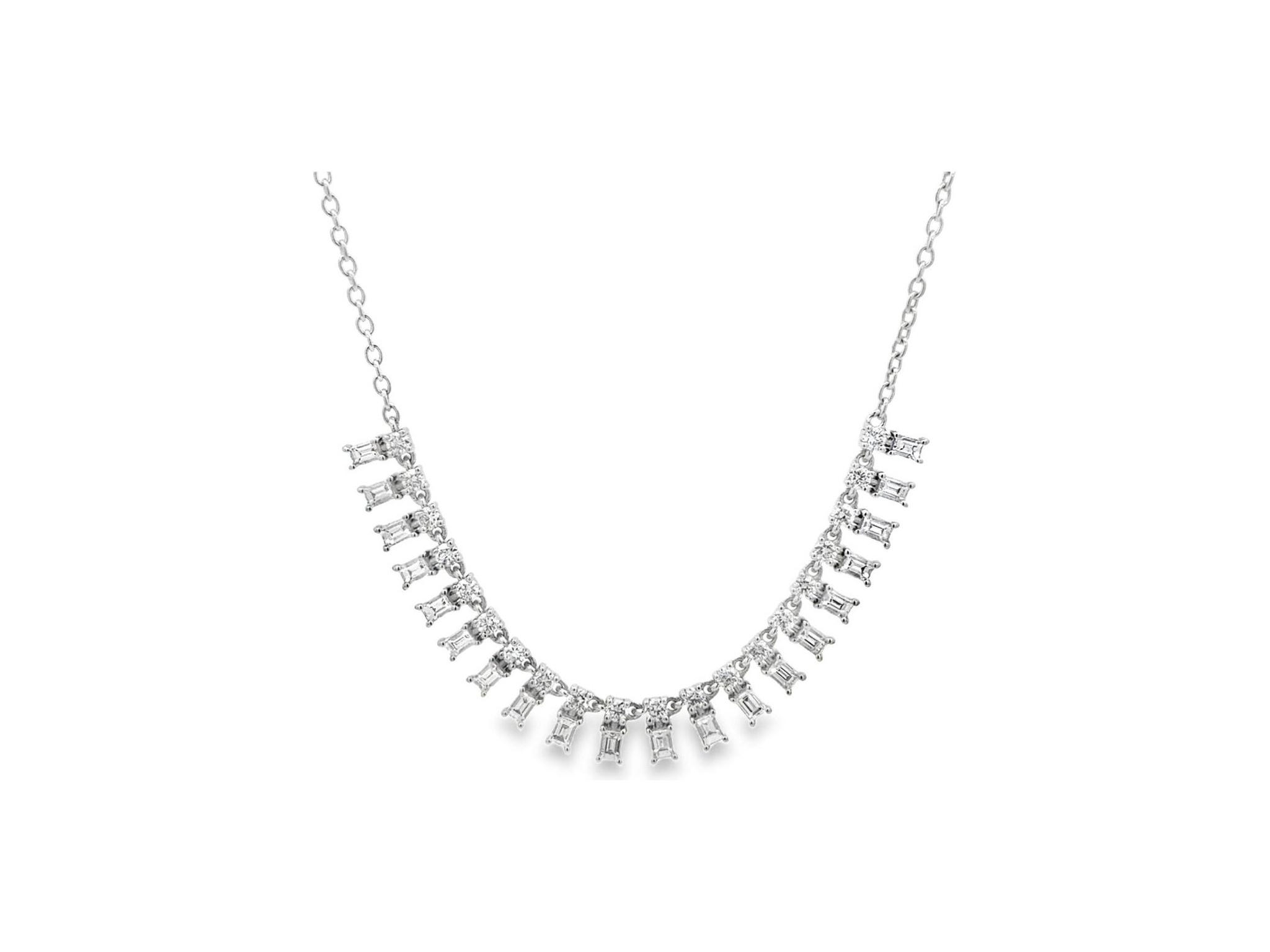 18K White Gold Necklace with Natural Baguette and Round Diamonds