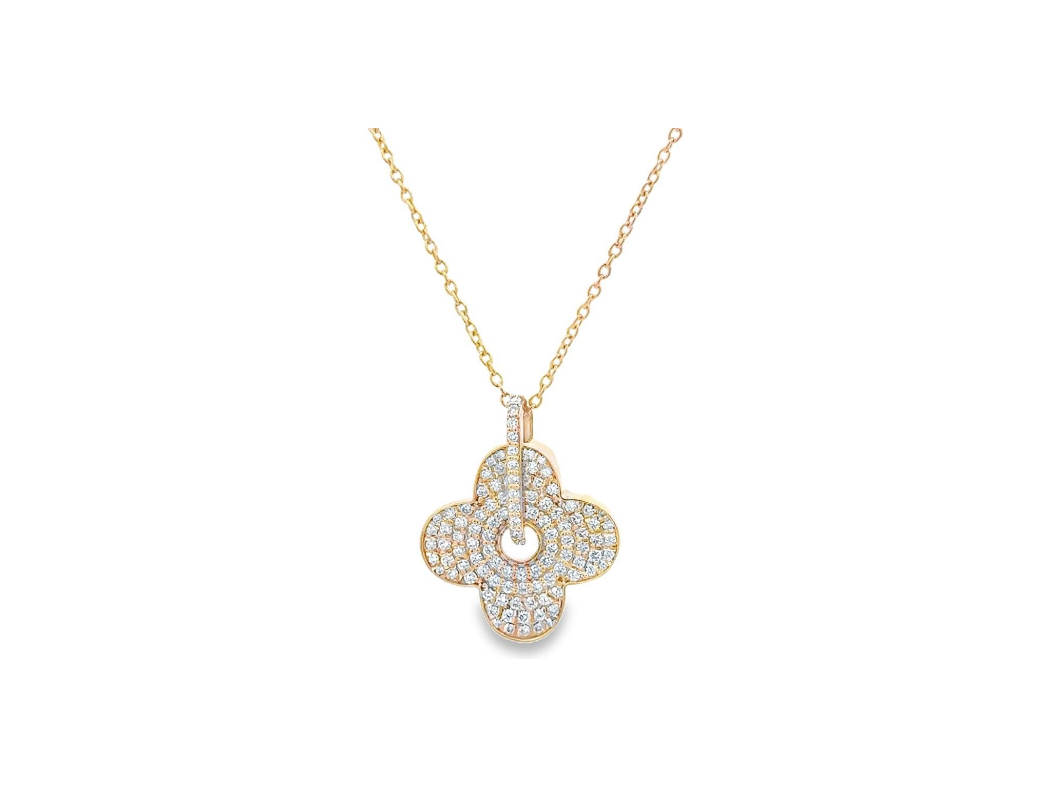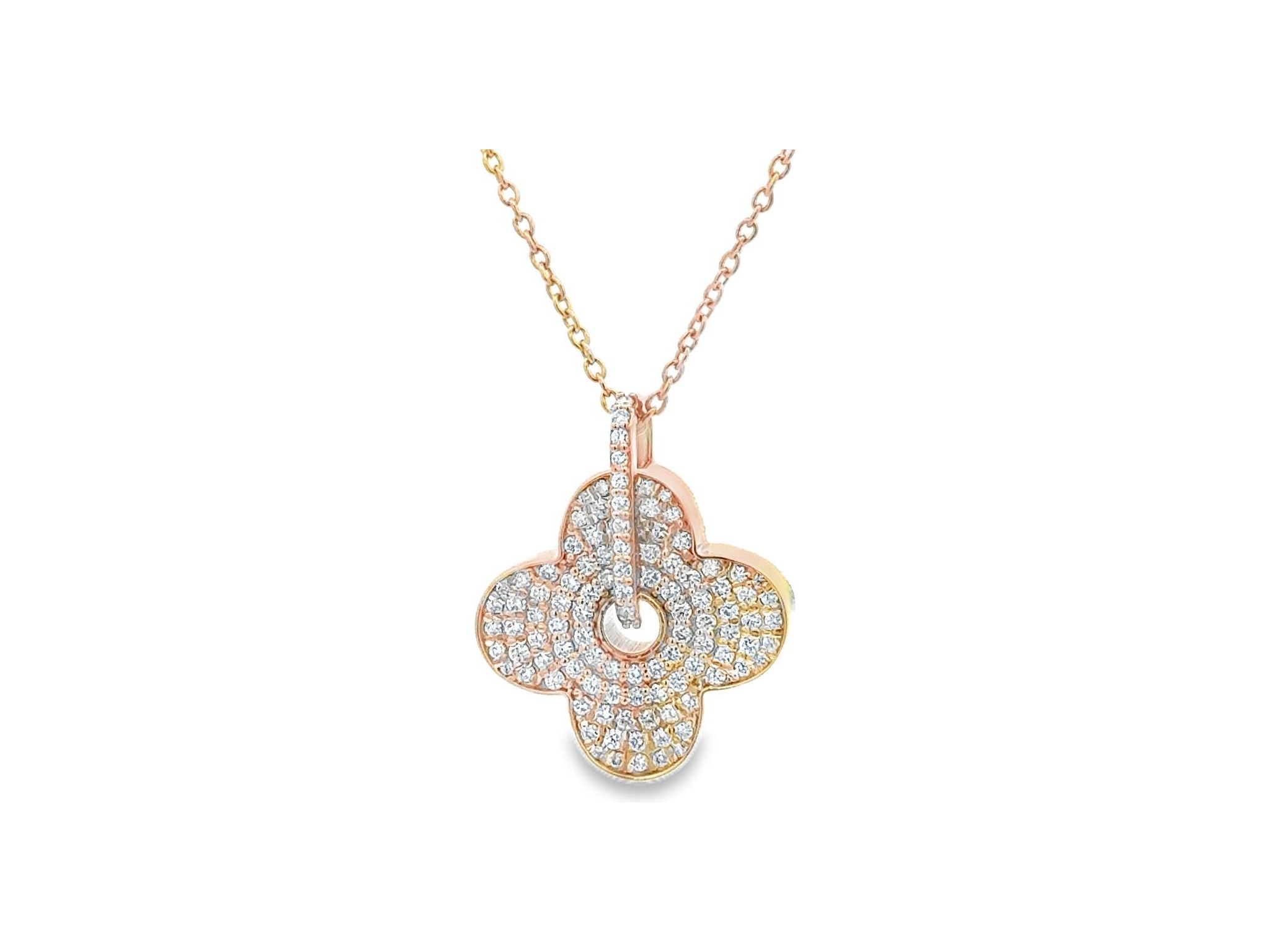 18K Rose Gold Long Necklace with Pavé Natural Round Diamonds in Floral Pendant