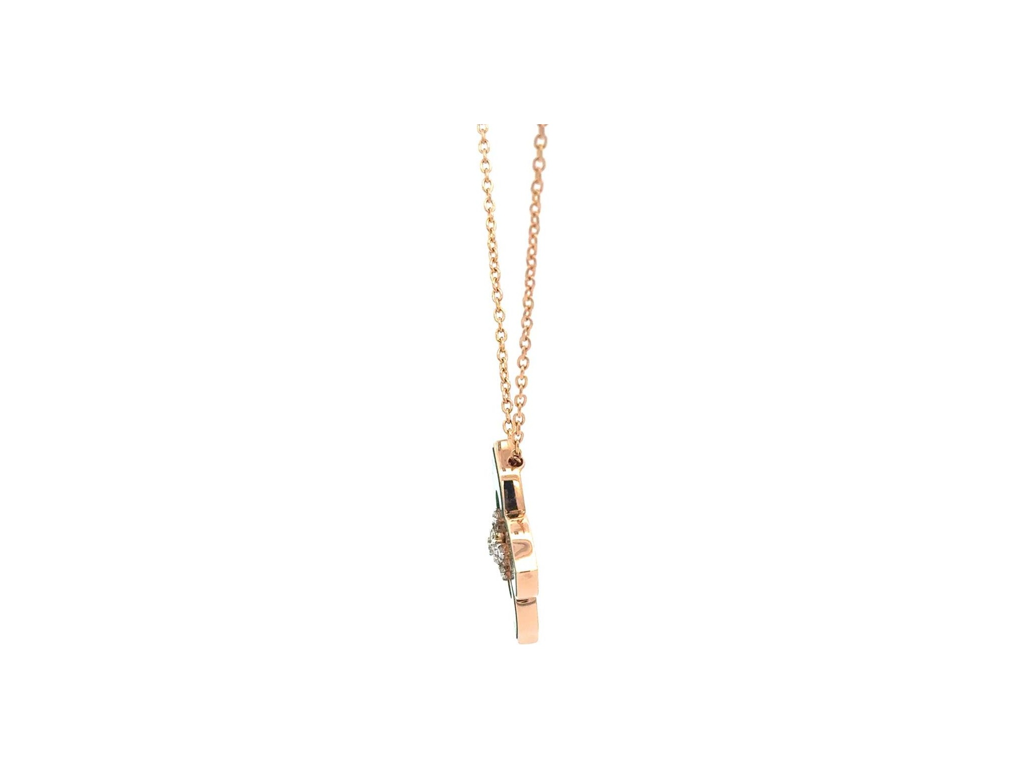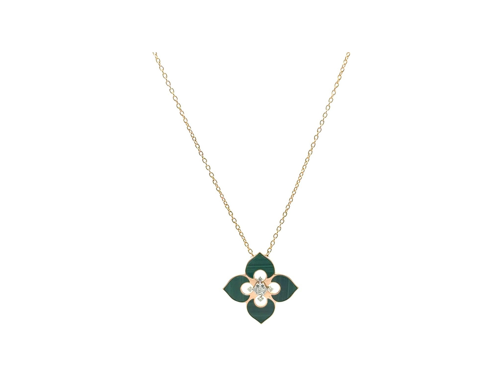 18K Rose Gold Necklace with Malachite and Natural Round Diamonds in Floral Design