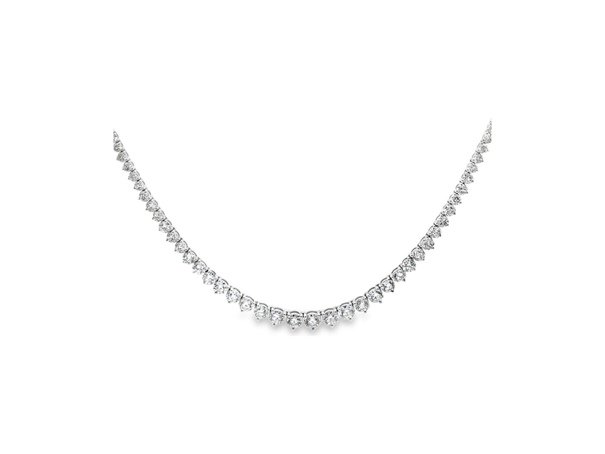18K White Gold Half Tennis Necklace with Natural Round Diamonds