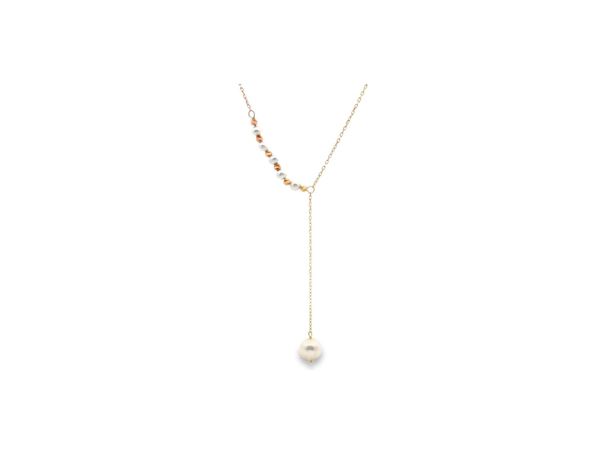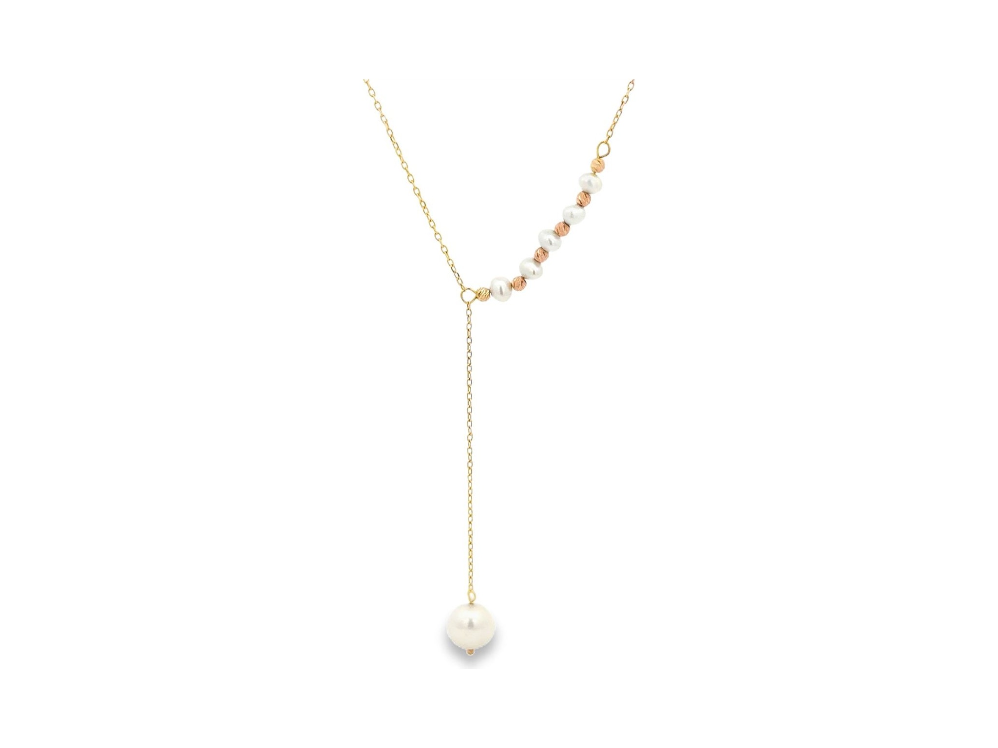 18K Yellow Gold Lariat Necklace with Pearls