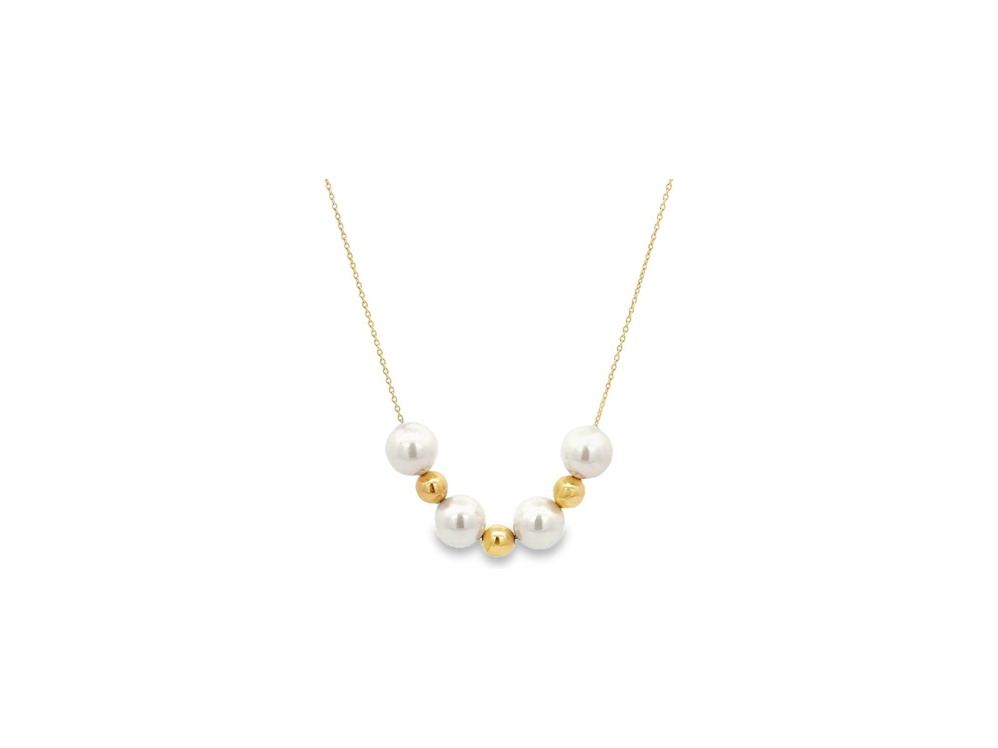 18K Yellow Gold Necklace with Pearls and Polished Gold Beads