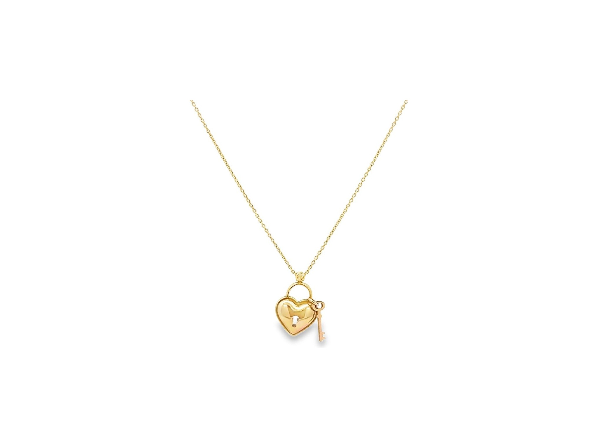 18K Yellow Gold Necklace with Heart Lock and Key Charms