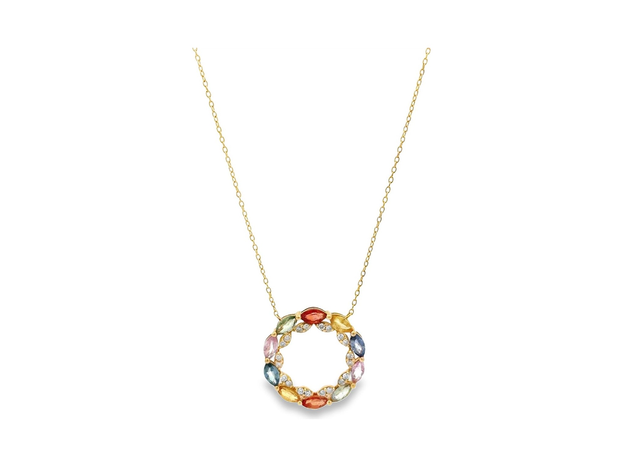 18K Yellow Gold Necklace with Natural Diamonds and Multicolor Gemstones