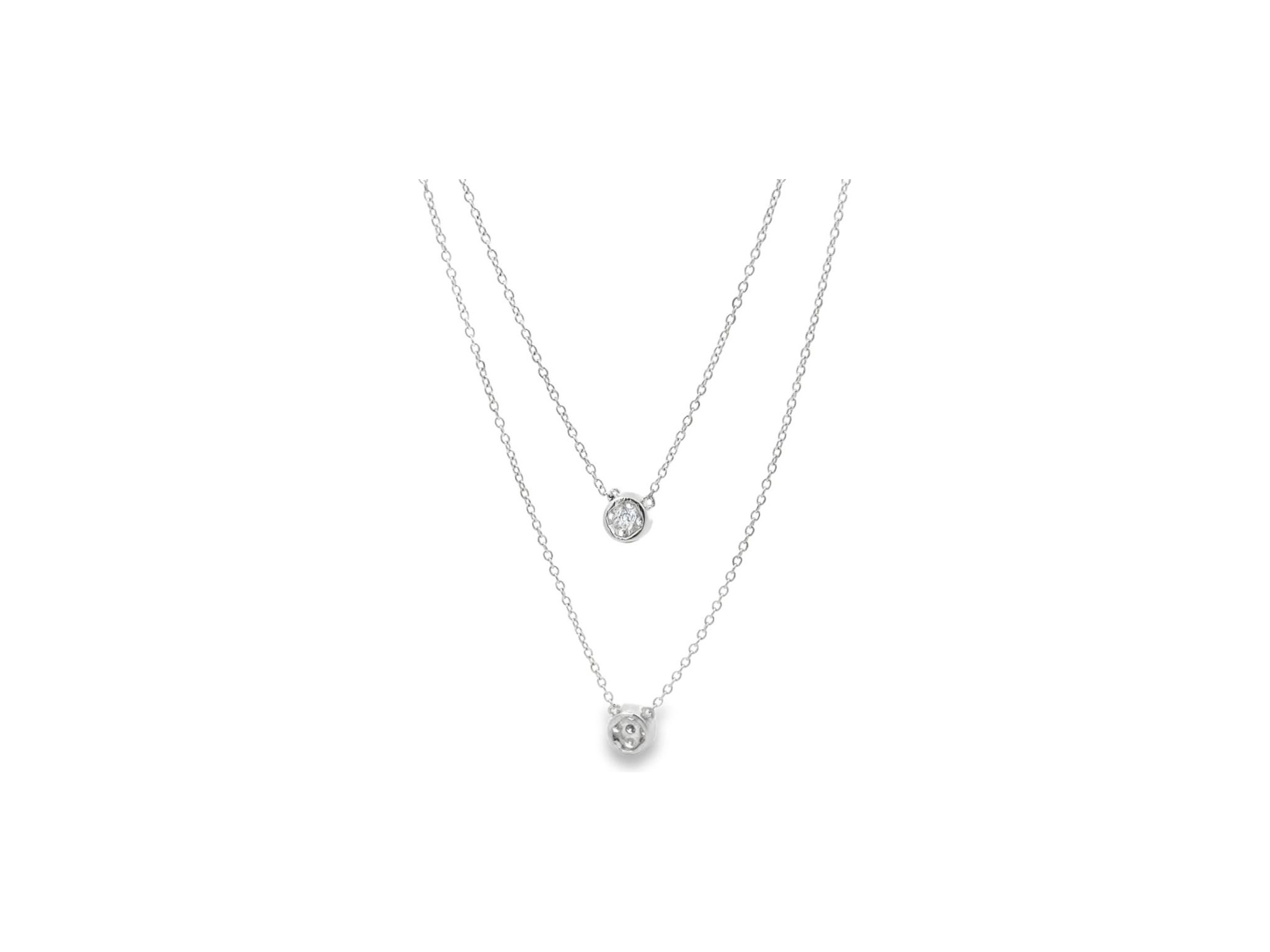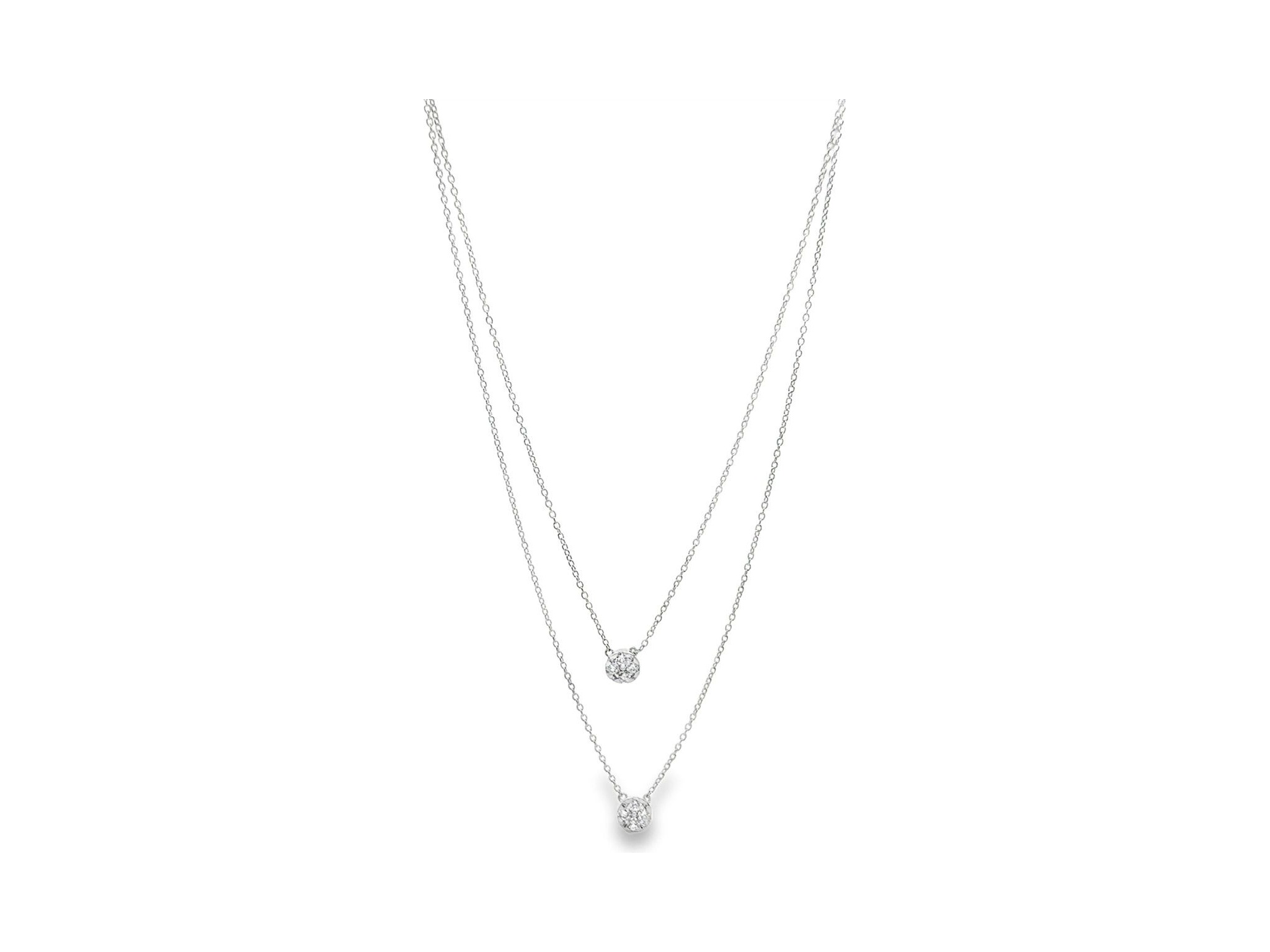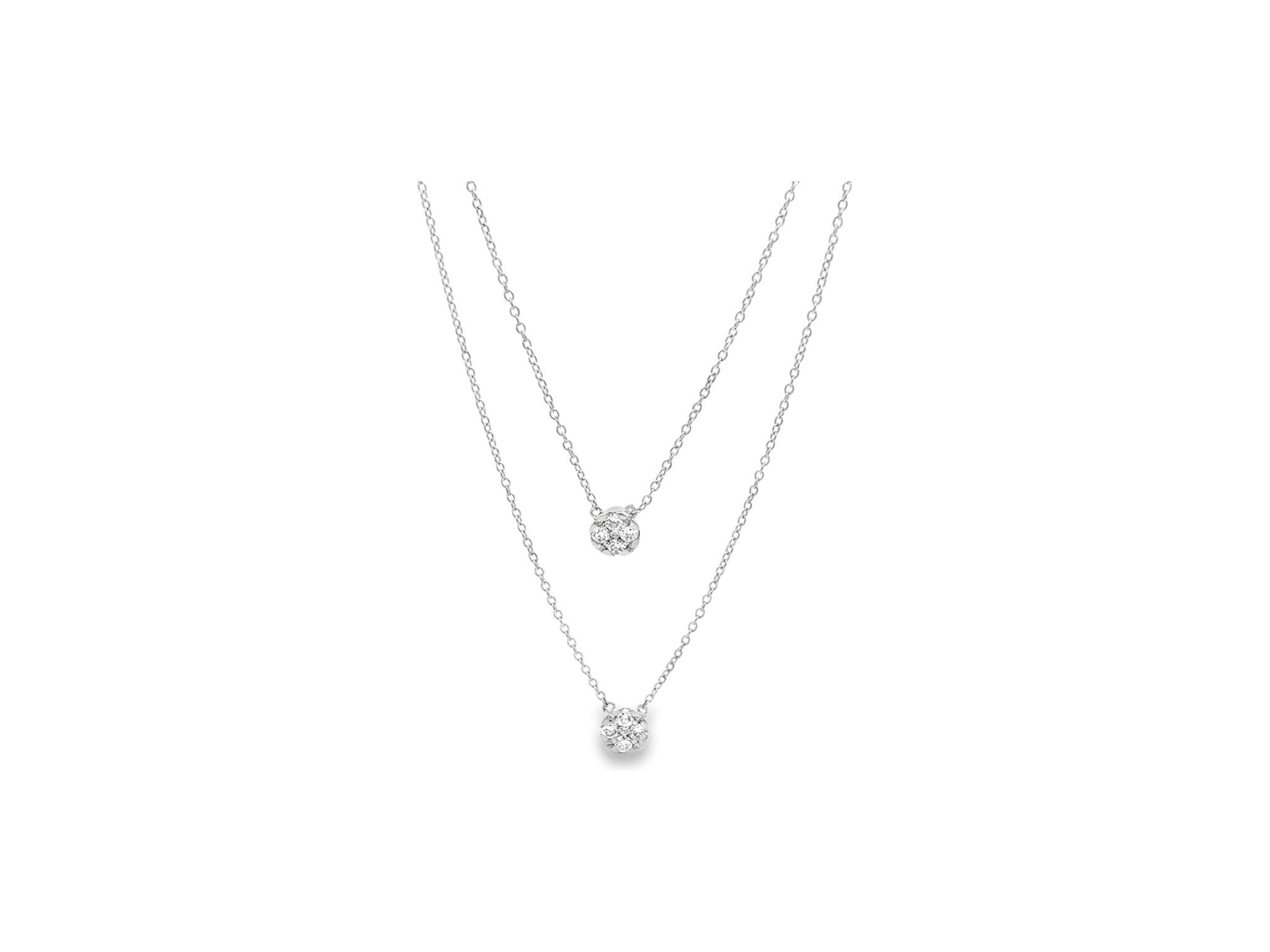 18K White Gold Double-Layer Necklace with Clustered Natural Round Diamonds
