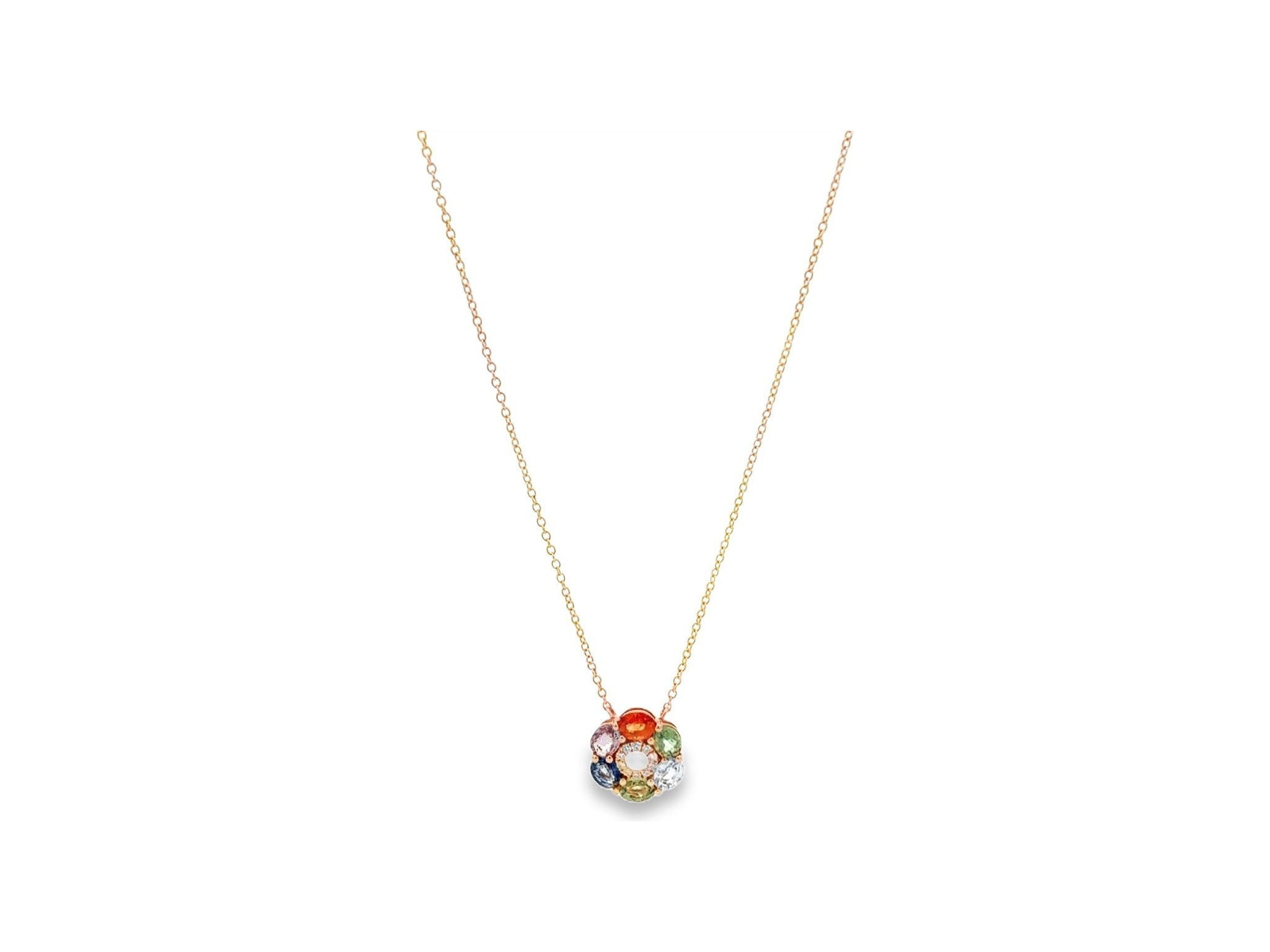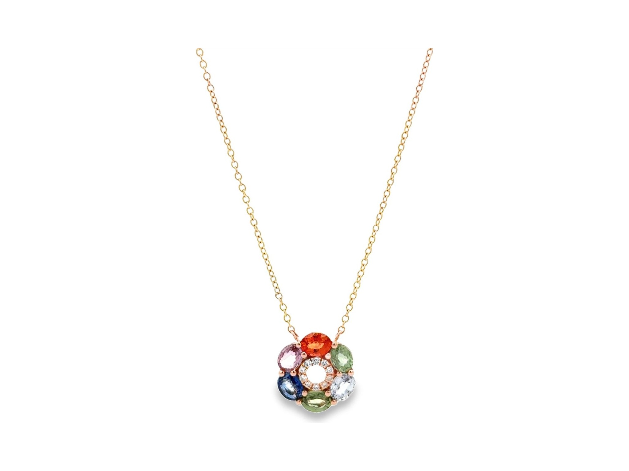 18K Rose Gold Necklace with Natural Multi-Color Gemstones and Diamonds