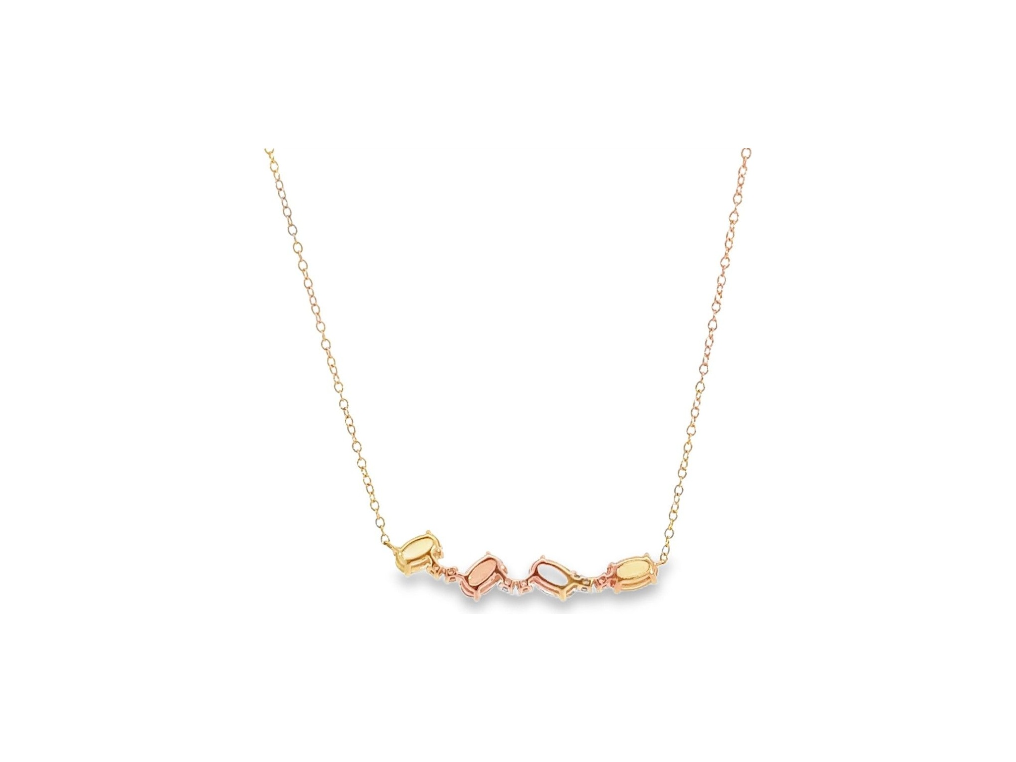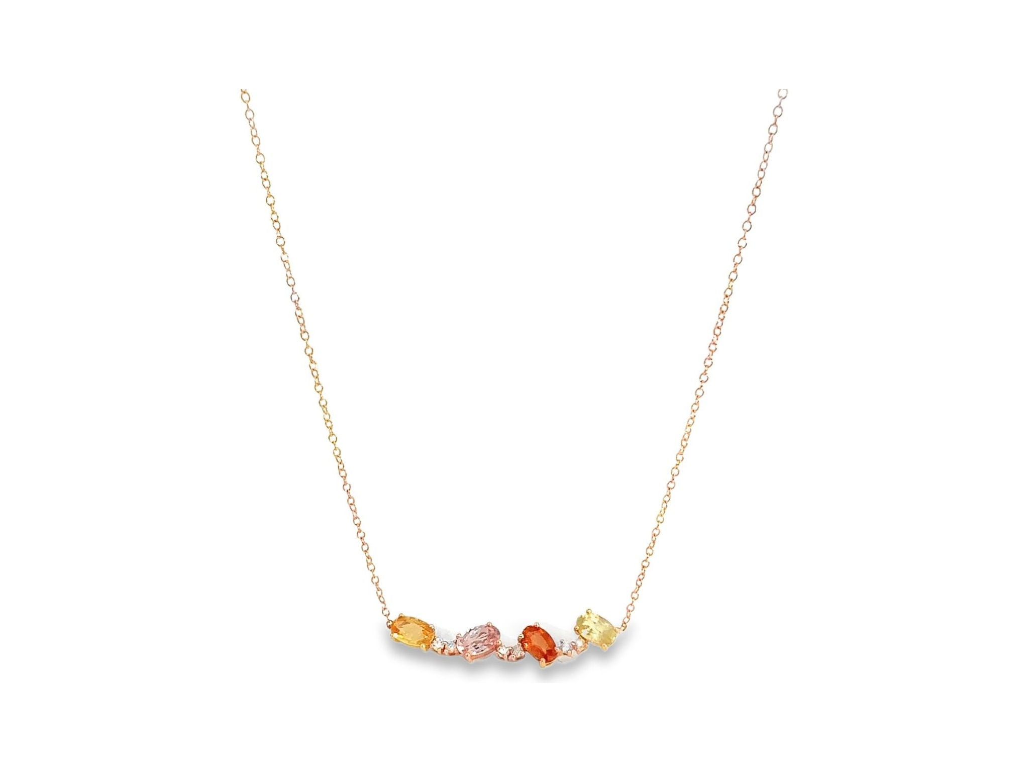 18K Rose Gold Necklace with Natural Diamonds and Multi-Color Oval Gemstones