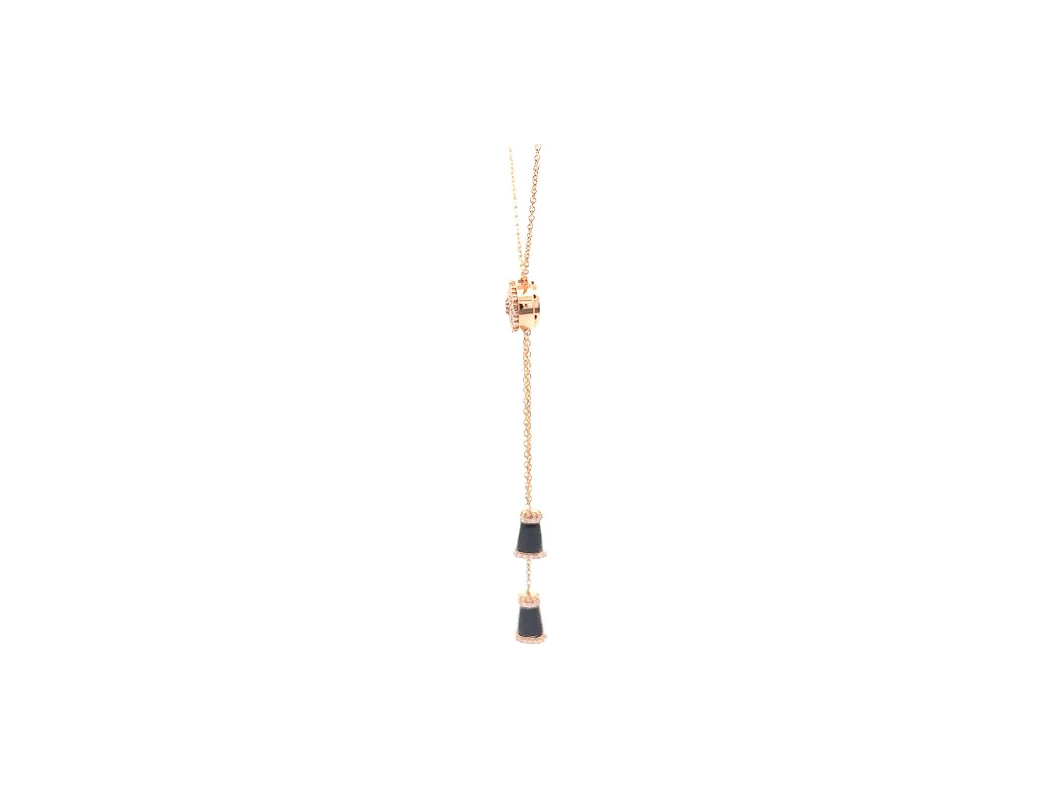 18K Rose Gold Lariat Necklace with Black Onyx and Natural Diamonds