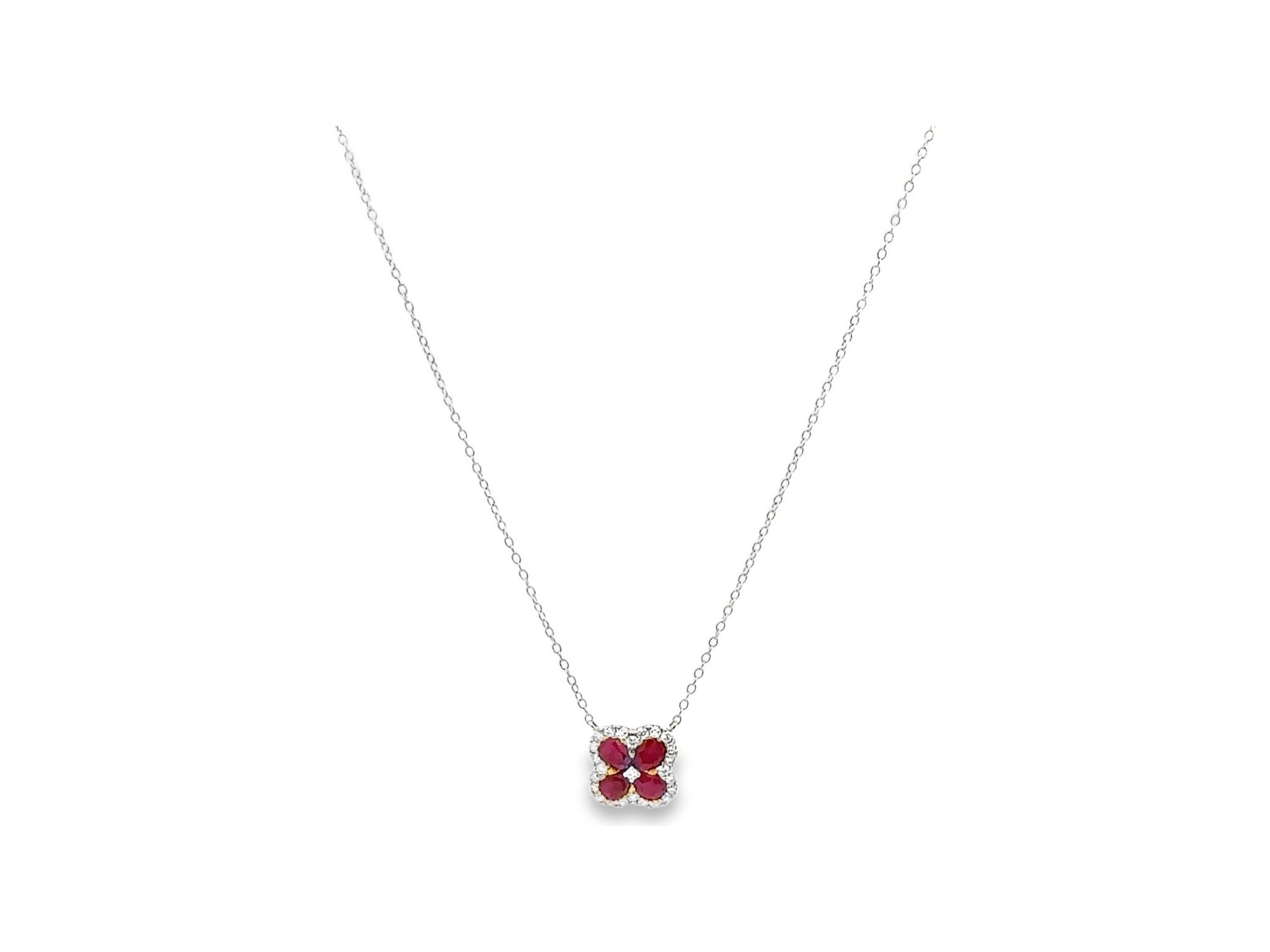 18K White Gold Necklace with Natural Ruby and Diamonds