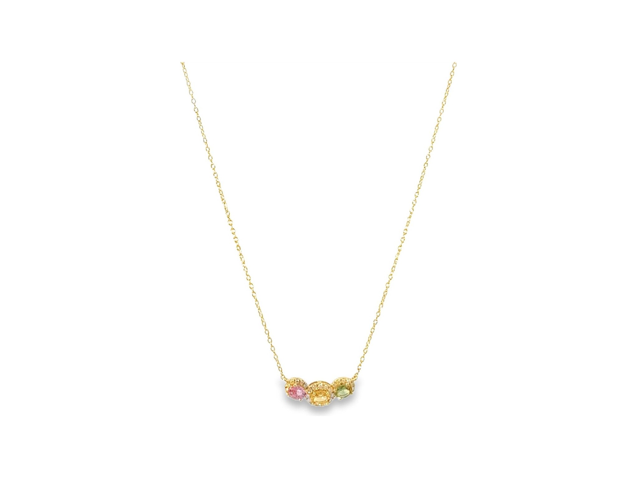 18K Yellow Gold Necklace with Natural Colored Gemstones and Diamonds