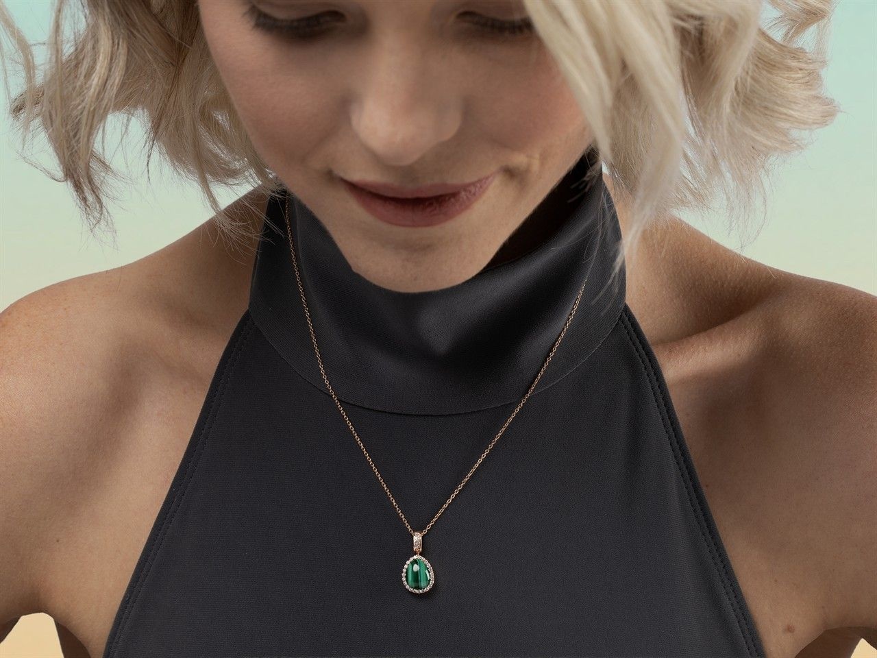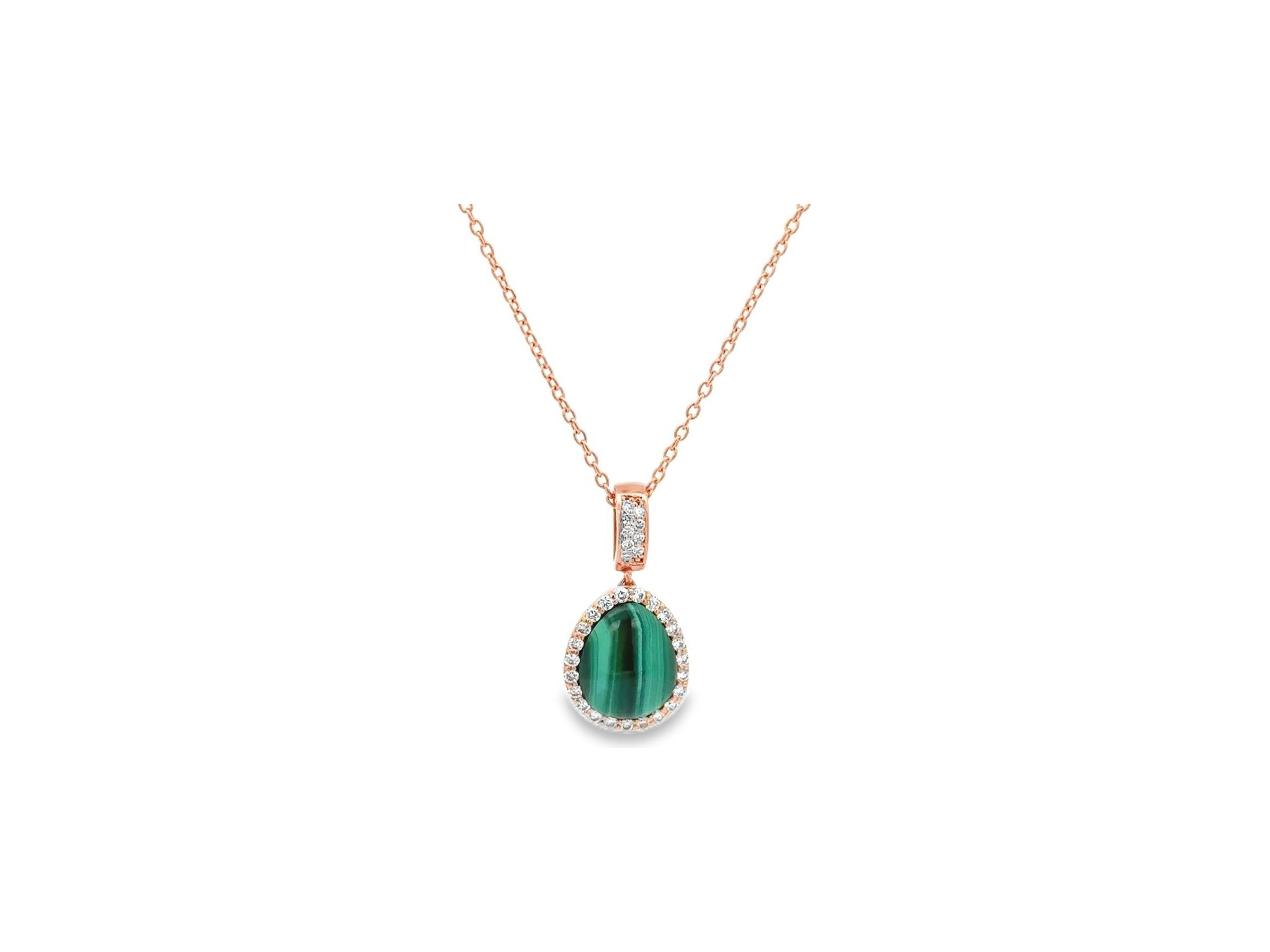 18K Rose Gold Necklace with Malachite and Natural Round Diamonds