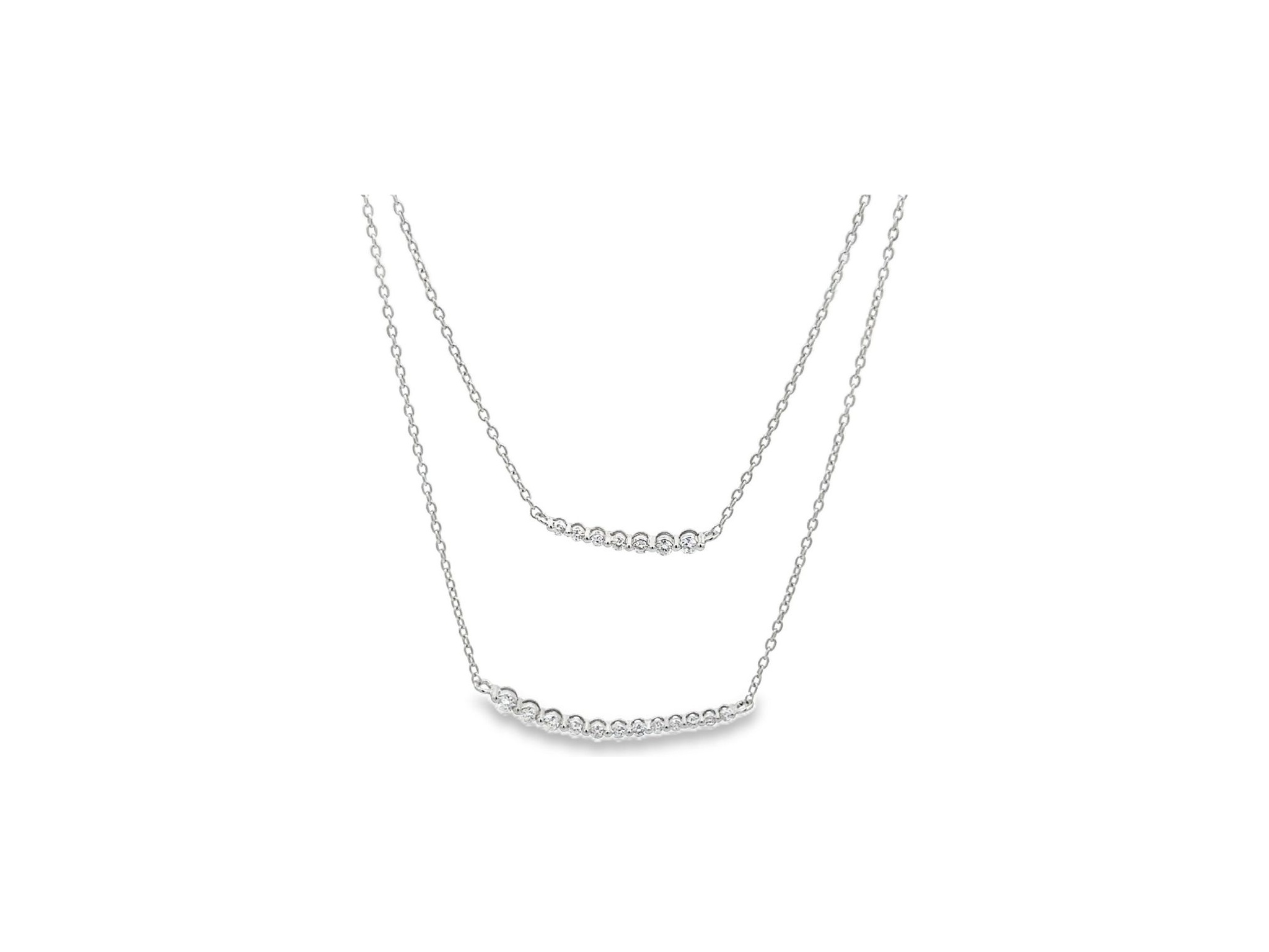 18K White Gold Double Layer Bar Necklace with Natural Diamonds