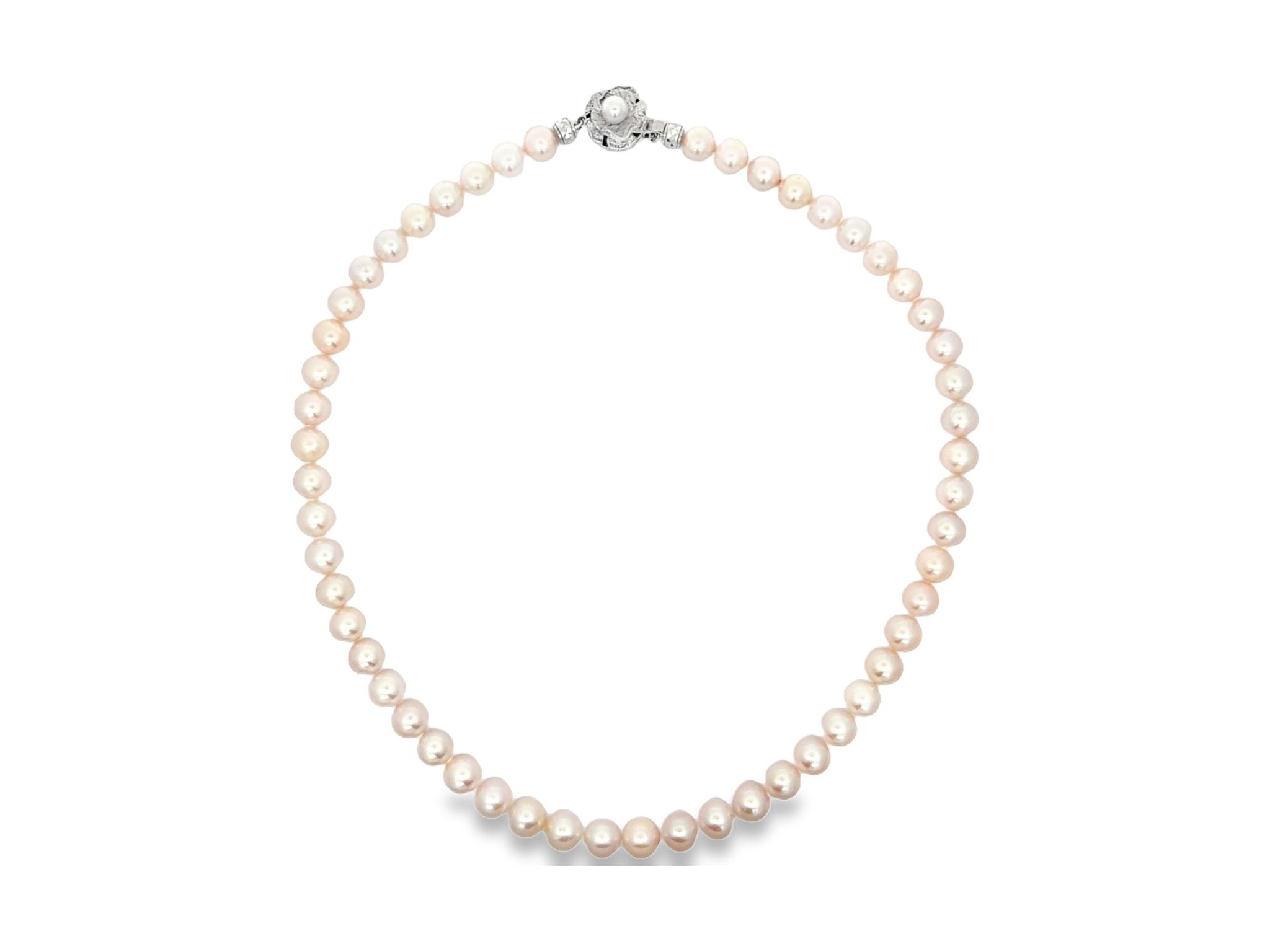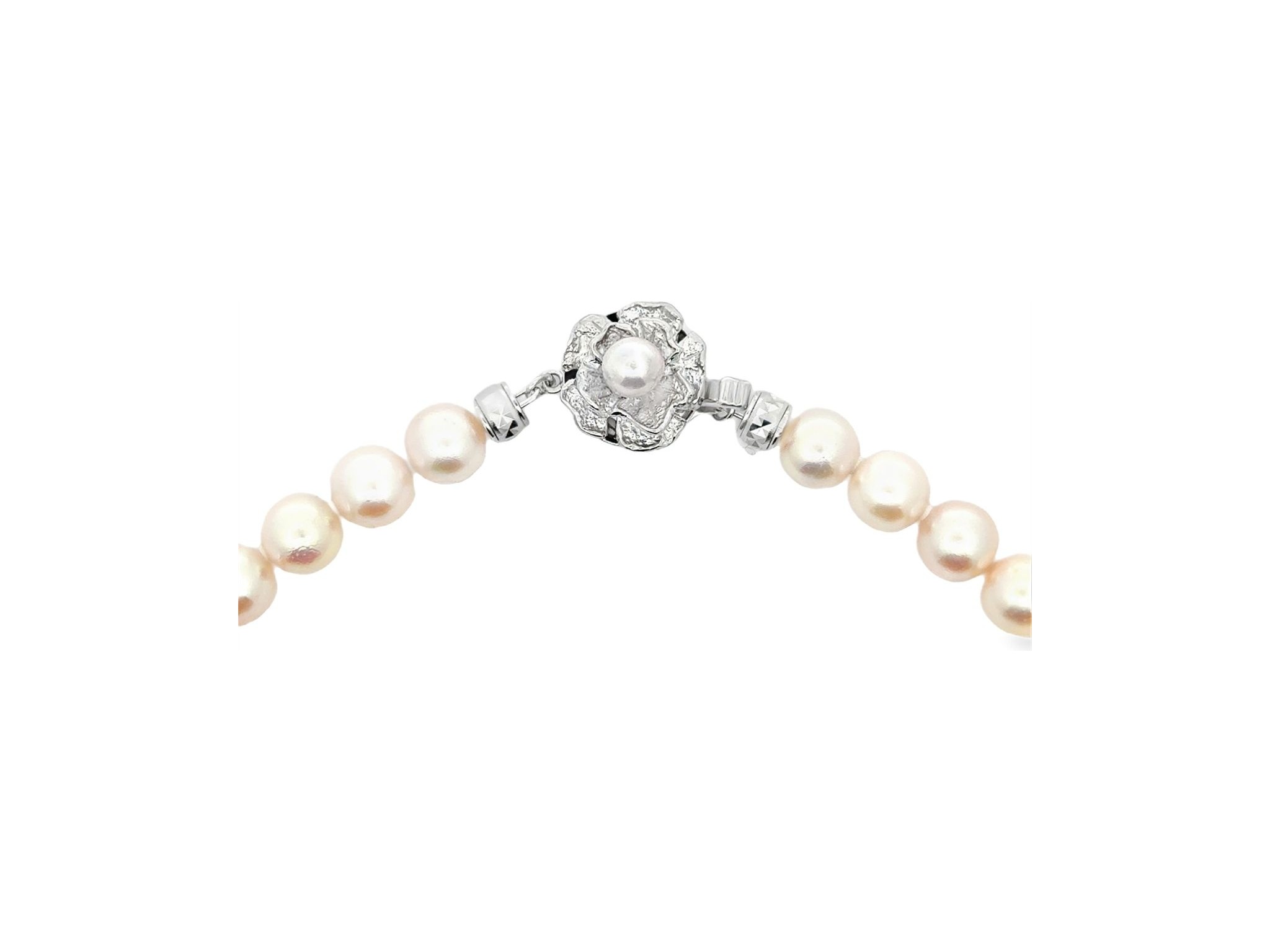 Elegant 8mm Japanese Akoya Pearl Strand Necklace with Sterling Silver Floral Clasp