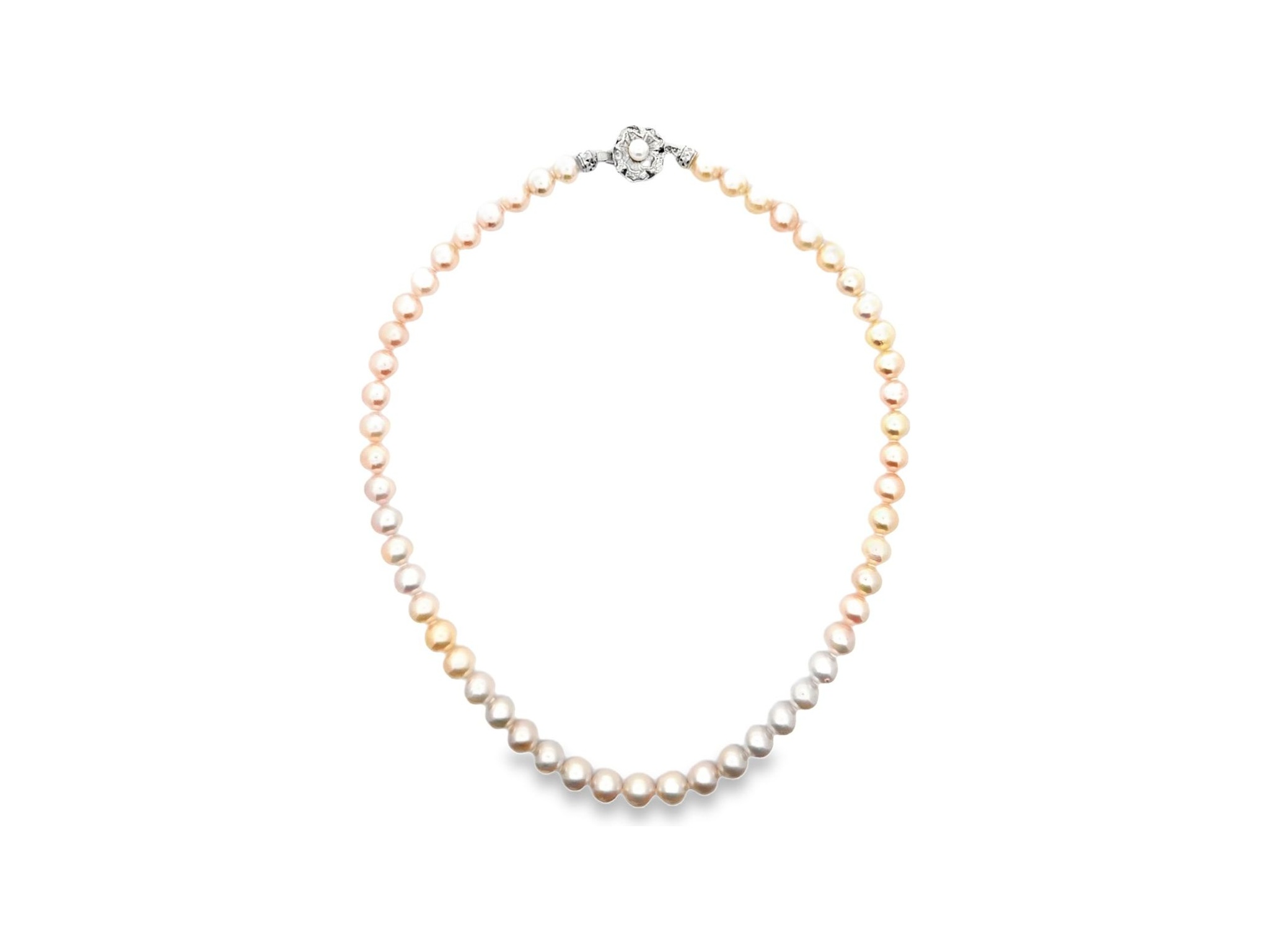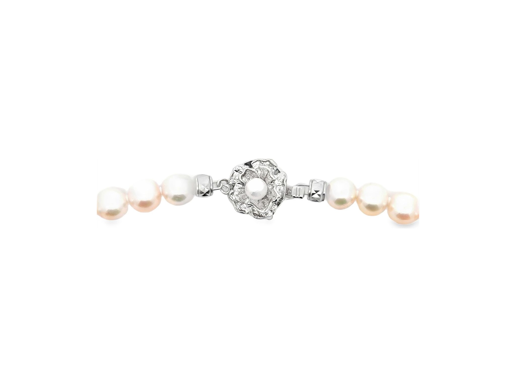 Elegant 8mm Japanese Akoya Pearl Strand Necklace with Sterling Silver Floral Clasp