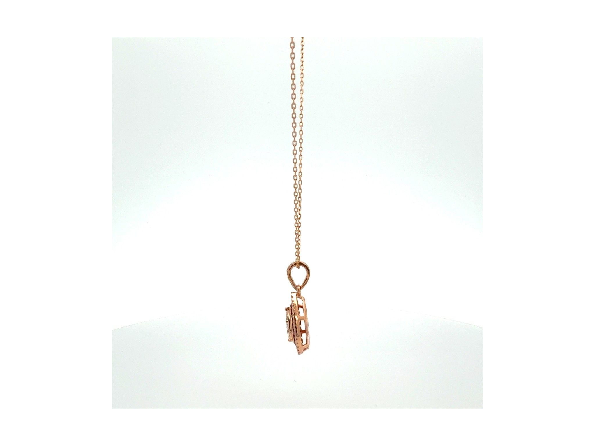18K Rose Gold Pendant with Natural Marquise and Princess-Cut Diamonds, Red Ruby Halo, and Outer Round Diamond Halo (with Chain)