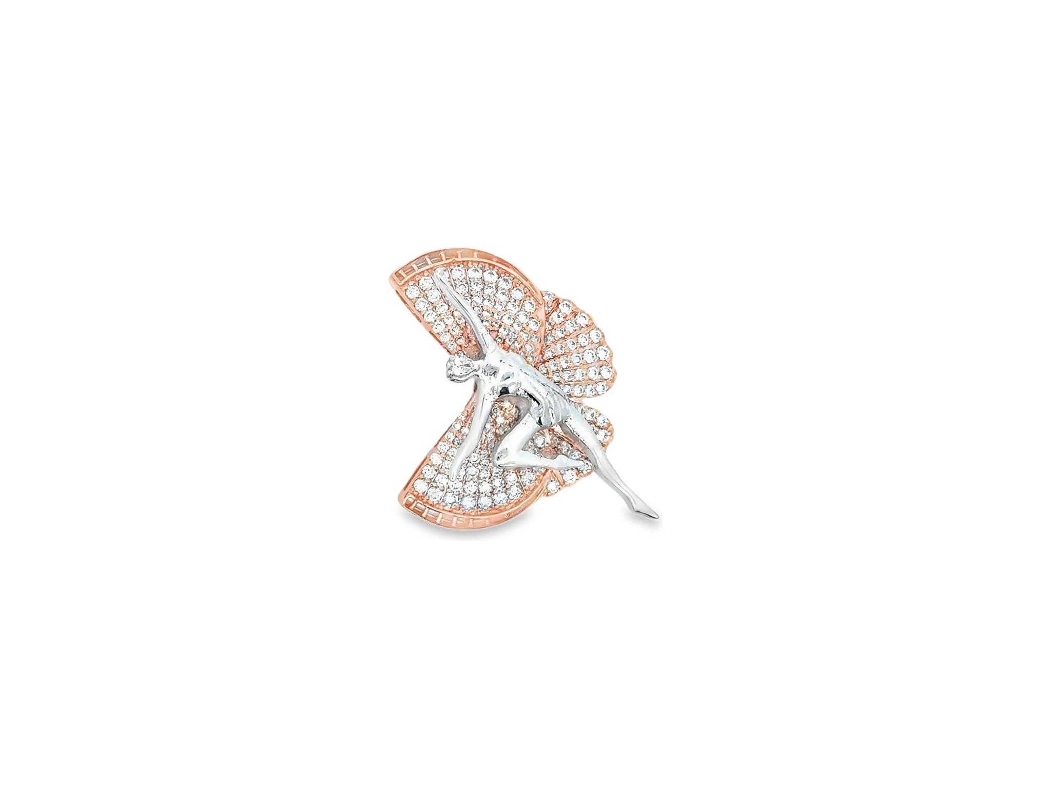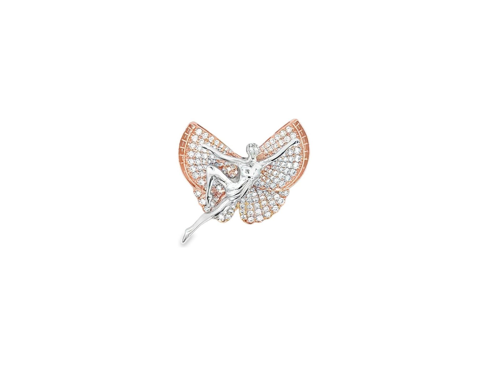 18K Rose and White Gold Fairy Pendant with Pavé-Set Natural Diamonds