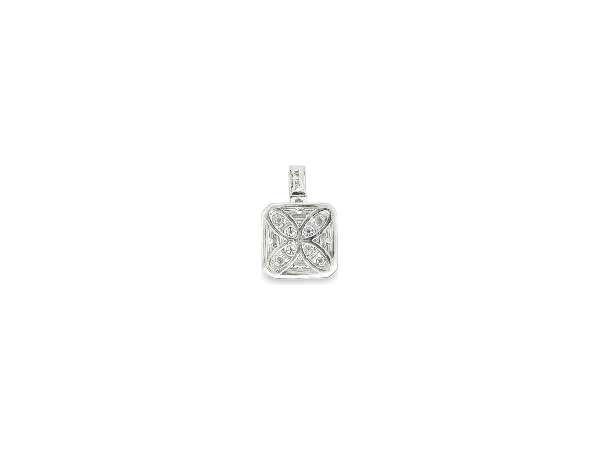 18K White Gold Square Pendant with Natural Round and Baguette Diamonds in Geometric Halo Design
