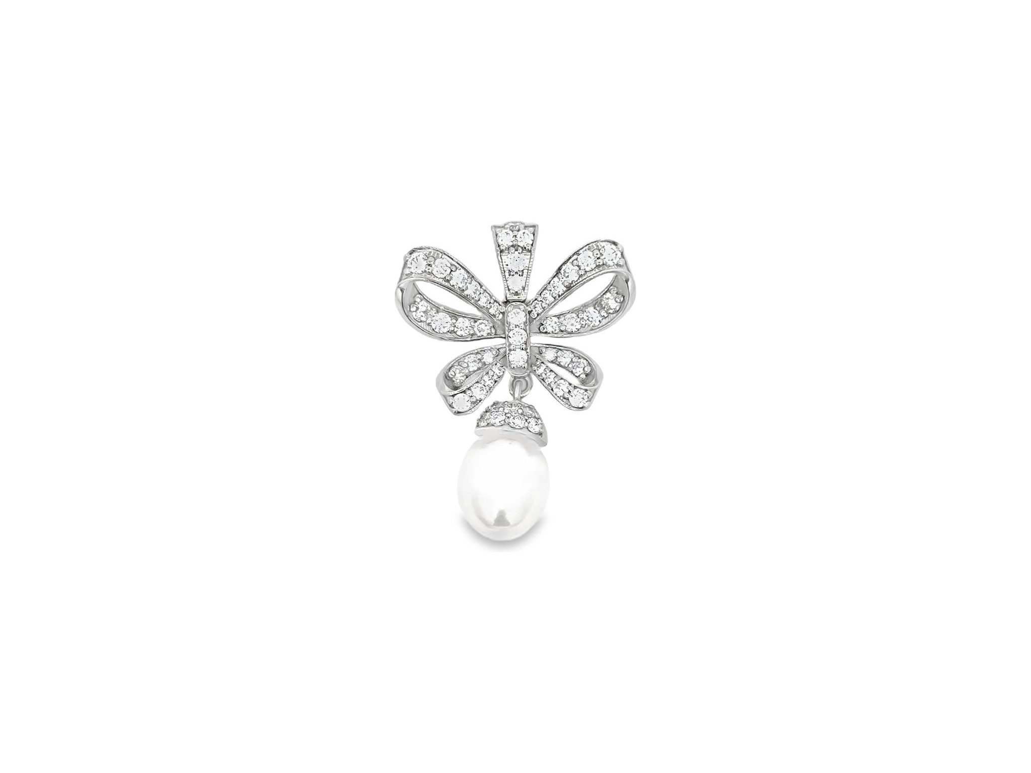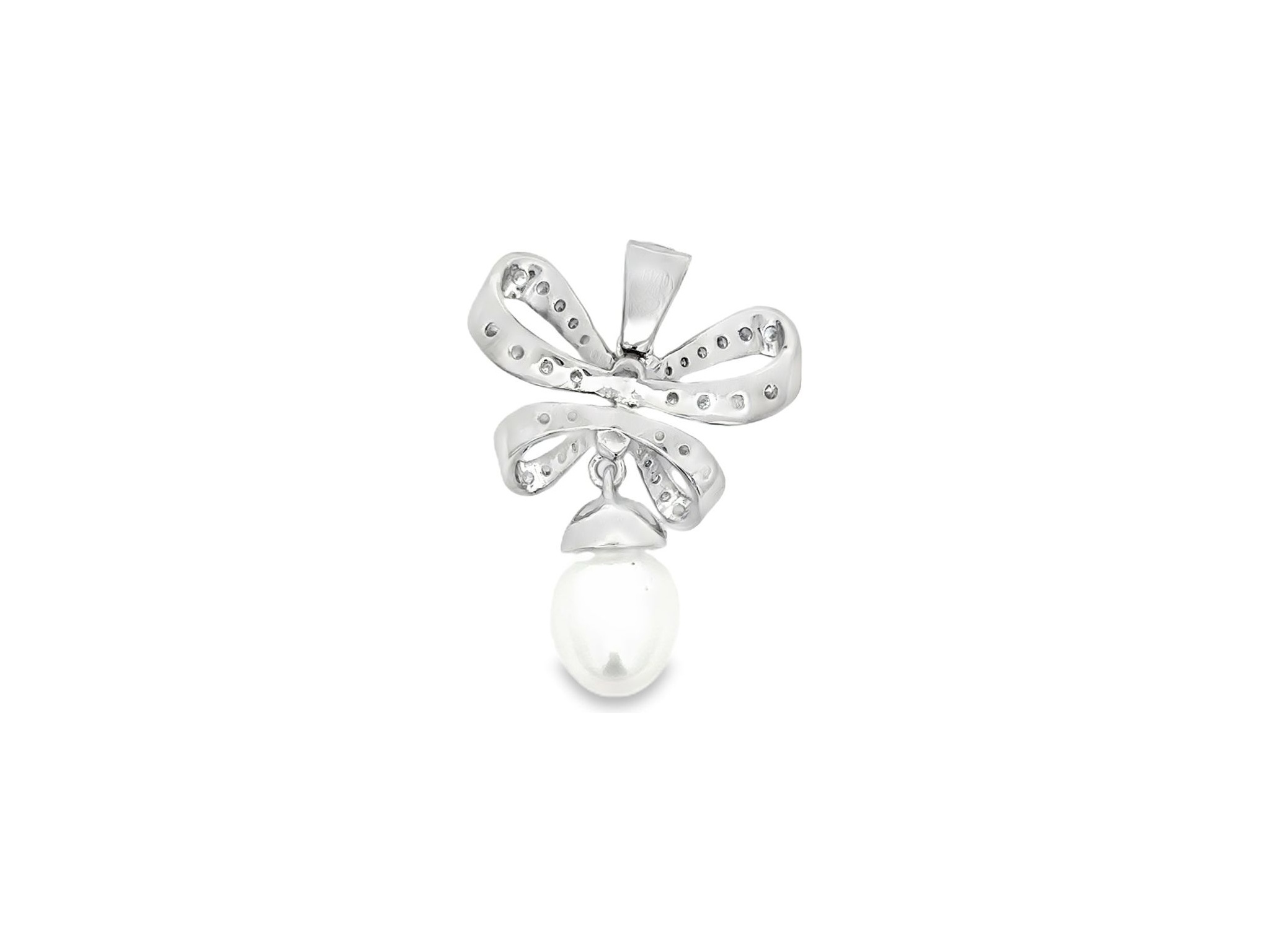 18K White Gold Bow Pendant with Natural Pearl and Natural Diamonds