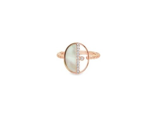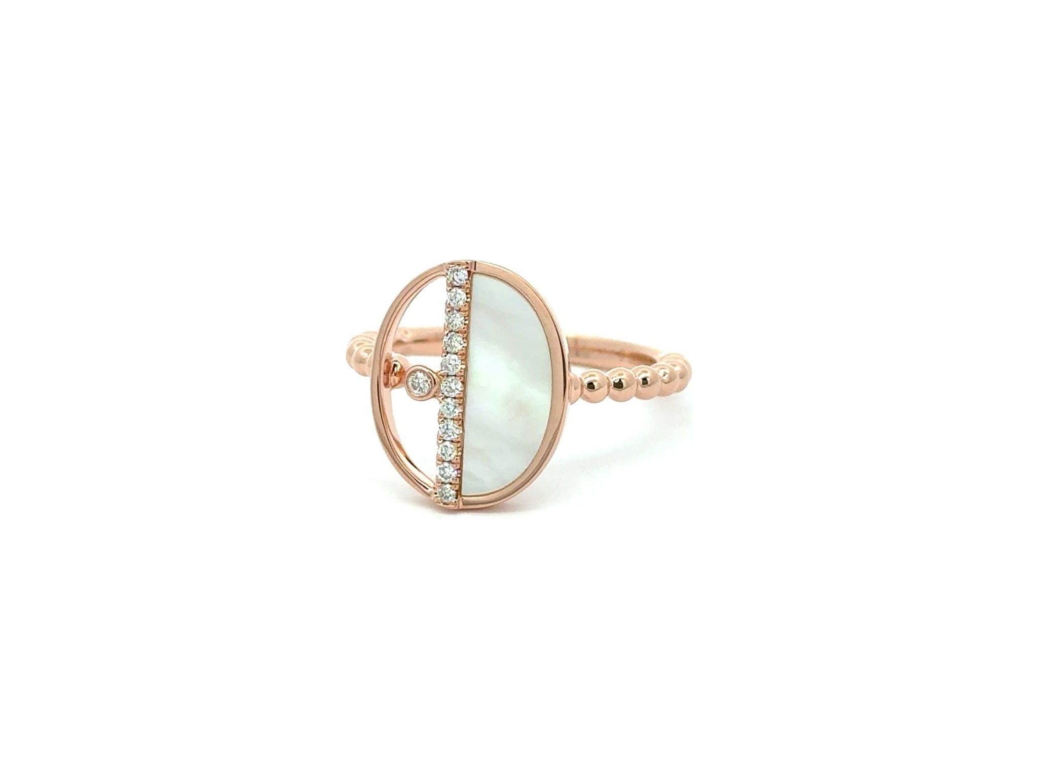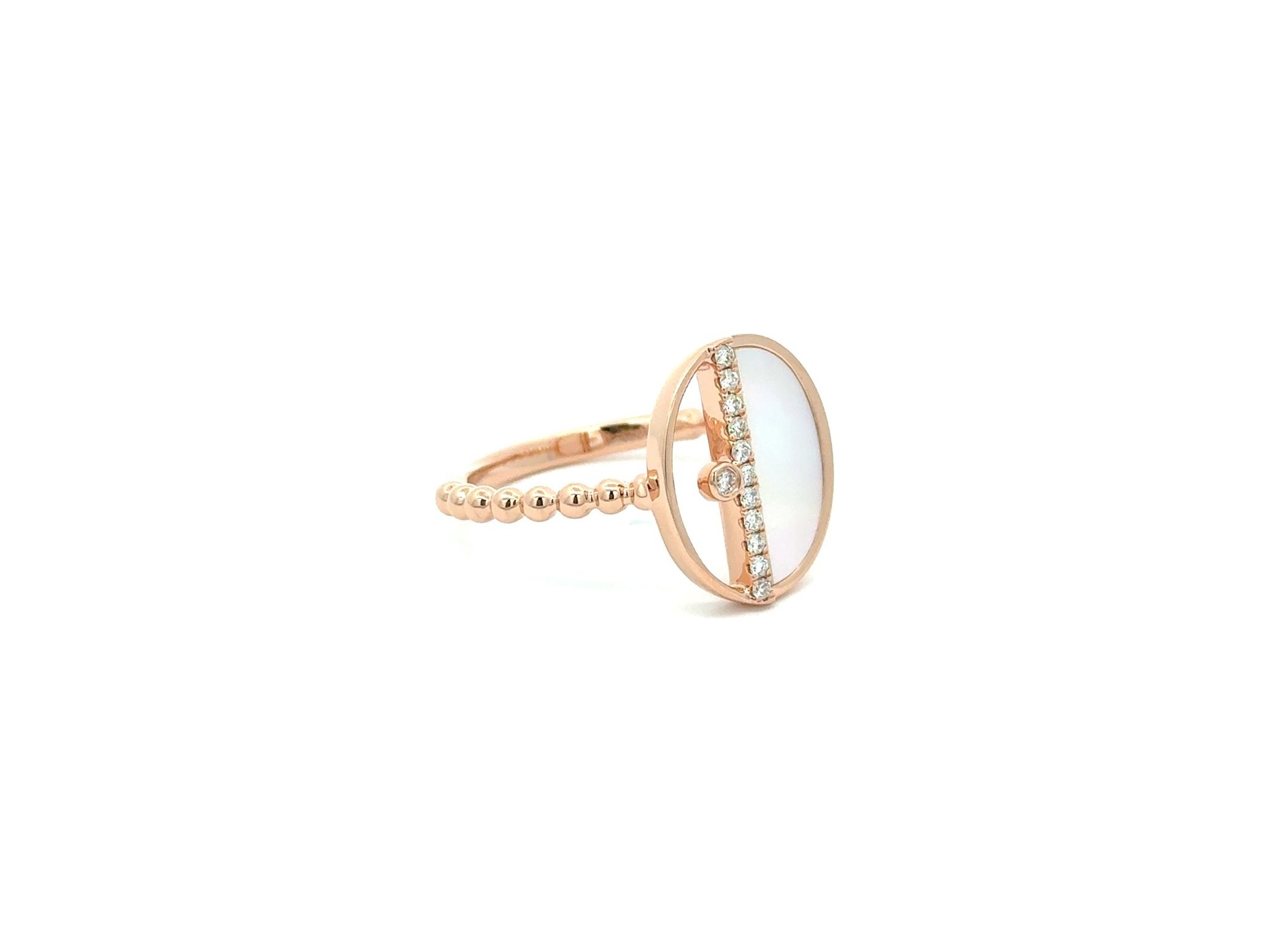 18K Rose Gold Ring with Mother of Pearl and Natural Diamonds – Oval Design
