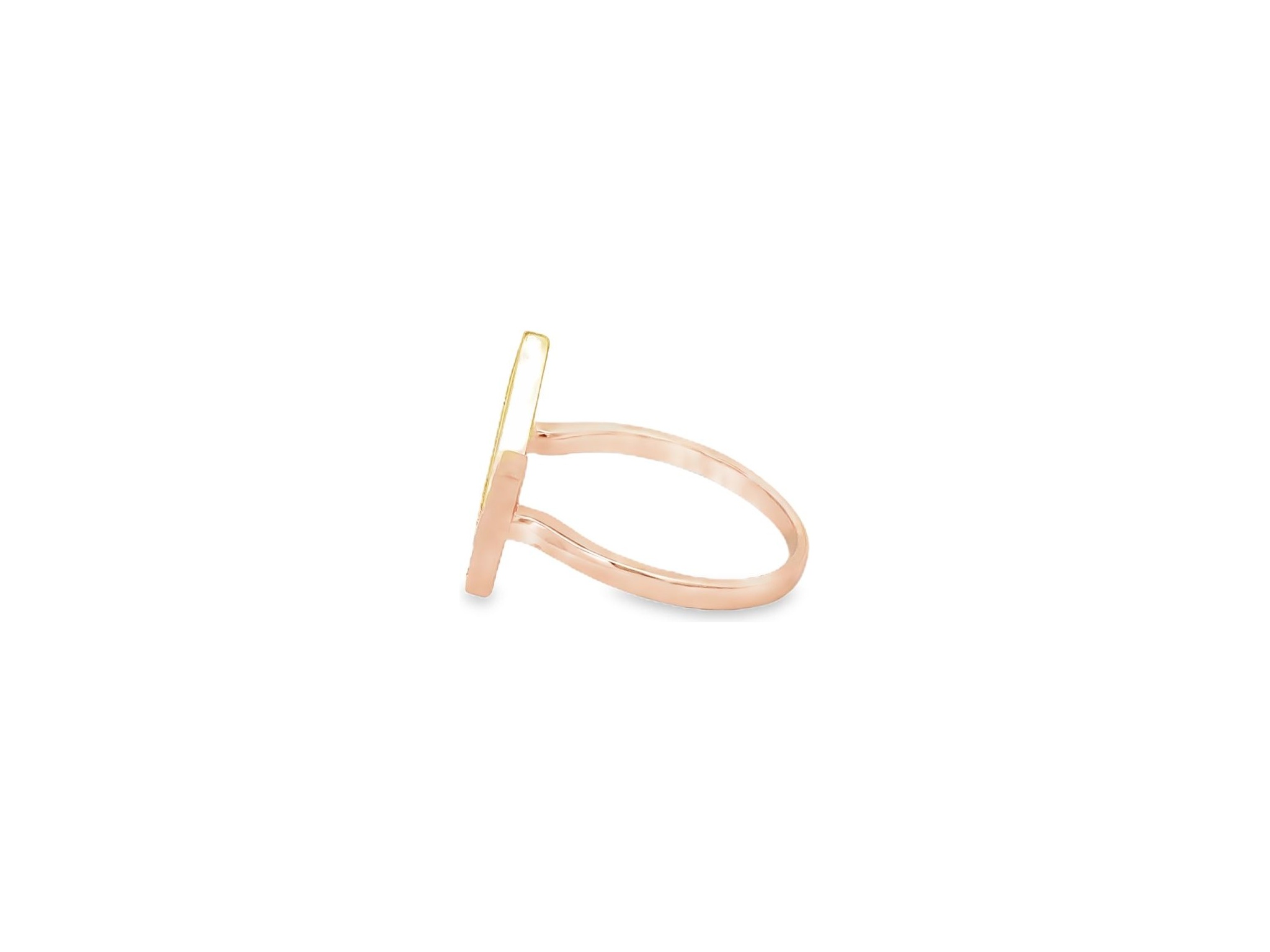 18K Rose Gold Open Ring with Rectangle Mother of Pearl and Natural Diamonds
