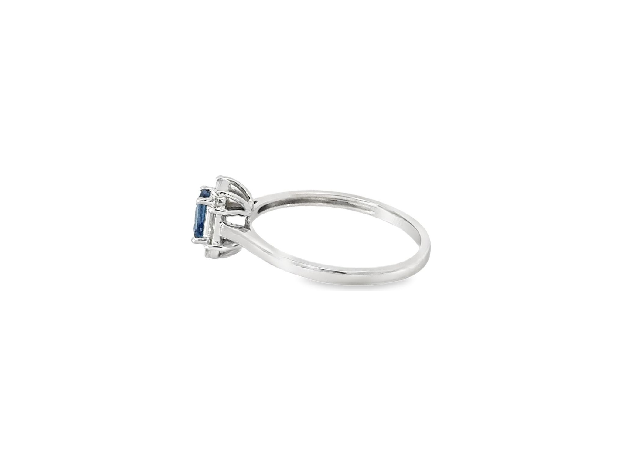 18K Whith Gold Ring with Blue Sapphire and Natural Baguette and Round-Cut Diamonds