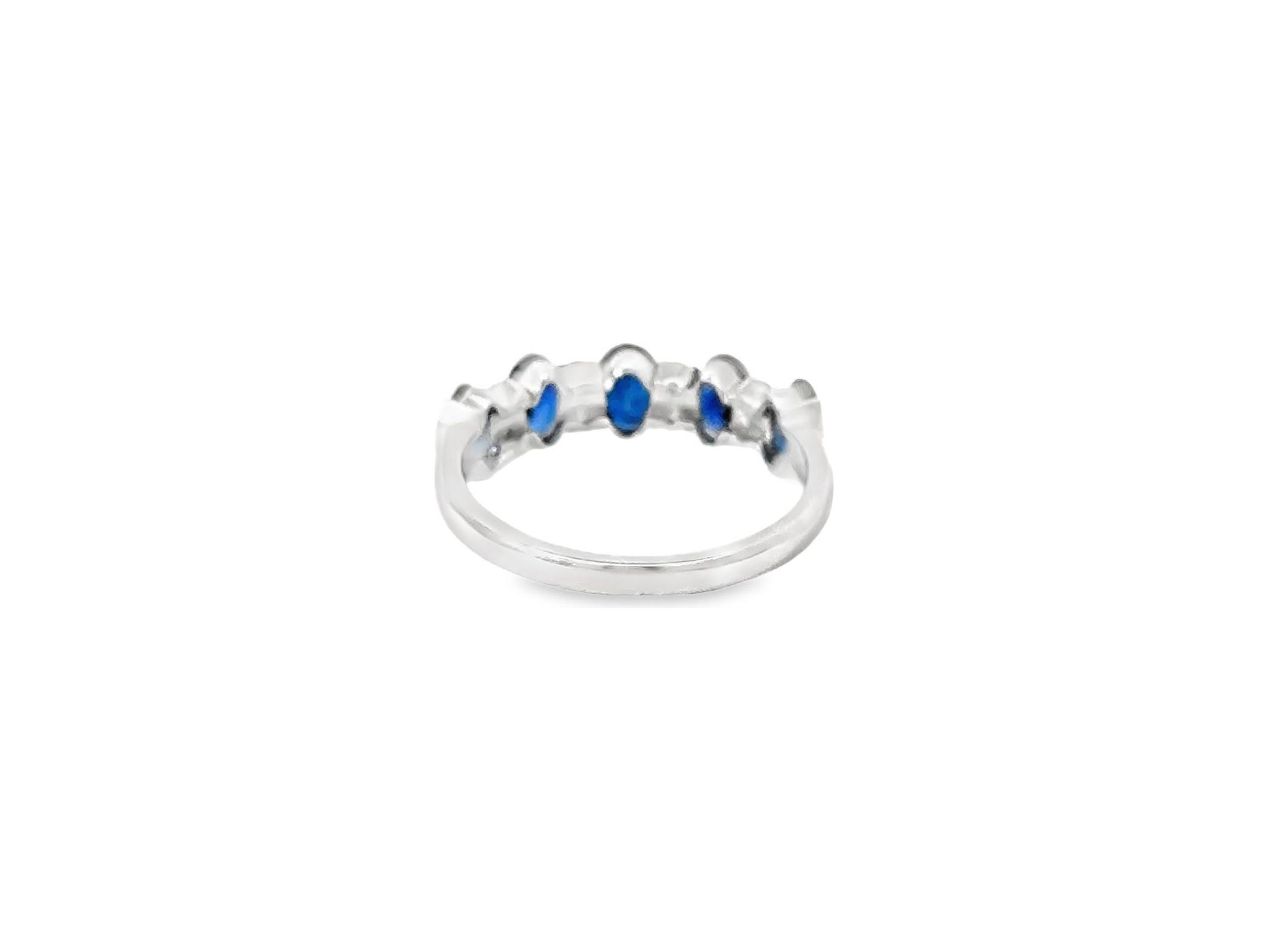 Platinum 900 Band Ring with Natural Blue Sapphires and Round-Cut Diamonds