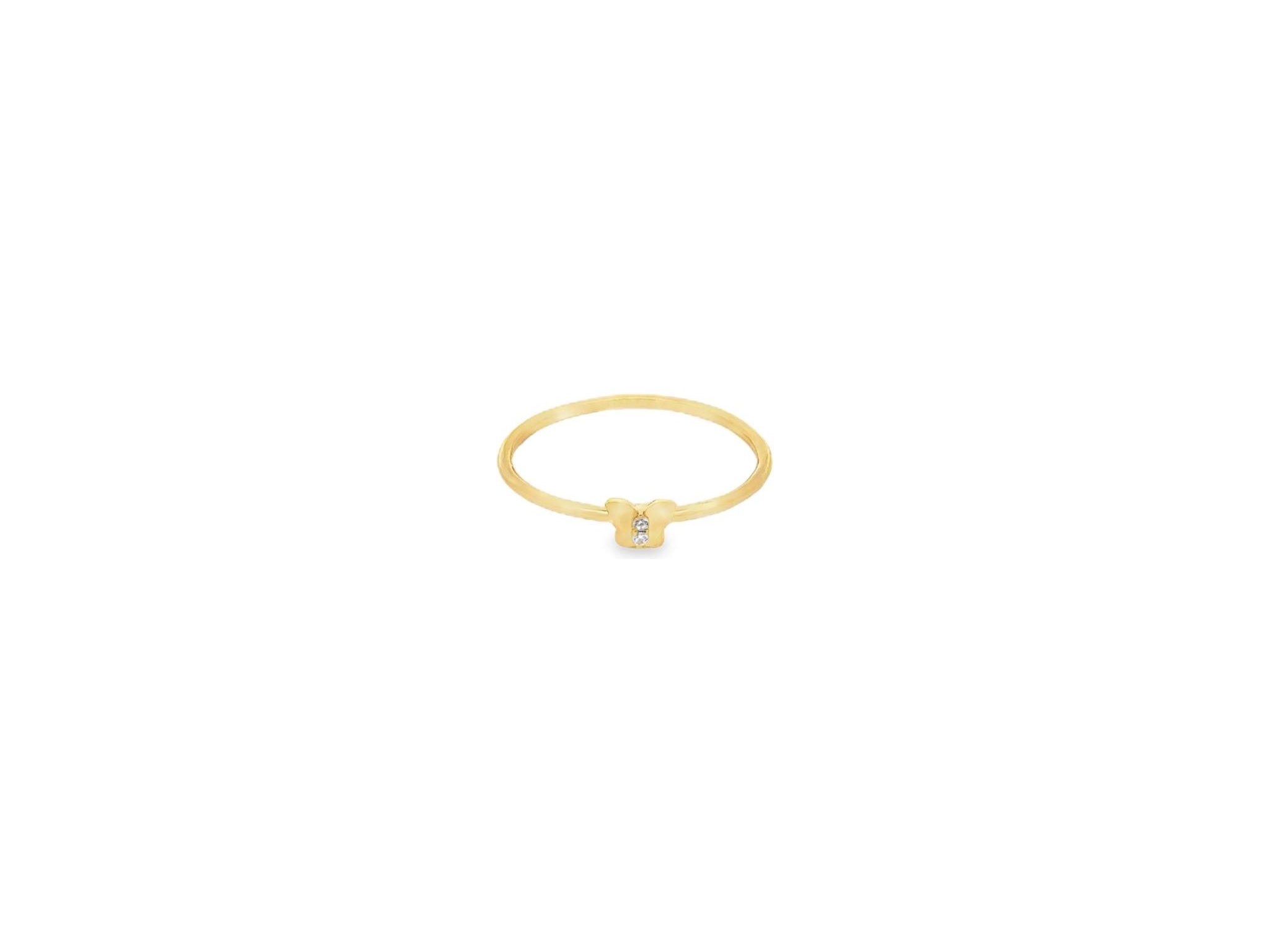 18K Yellow Gold Butterfly Ring with Center CZ Stone