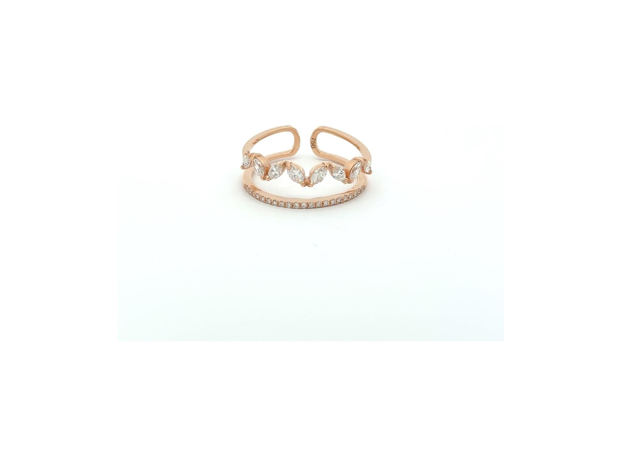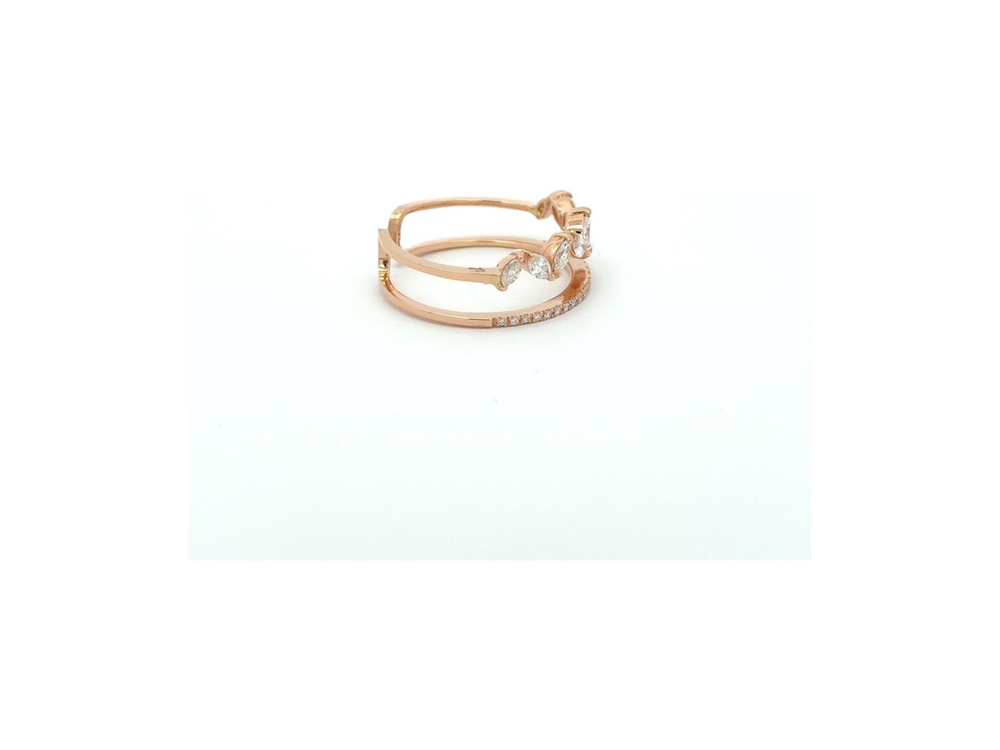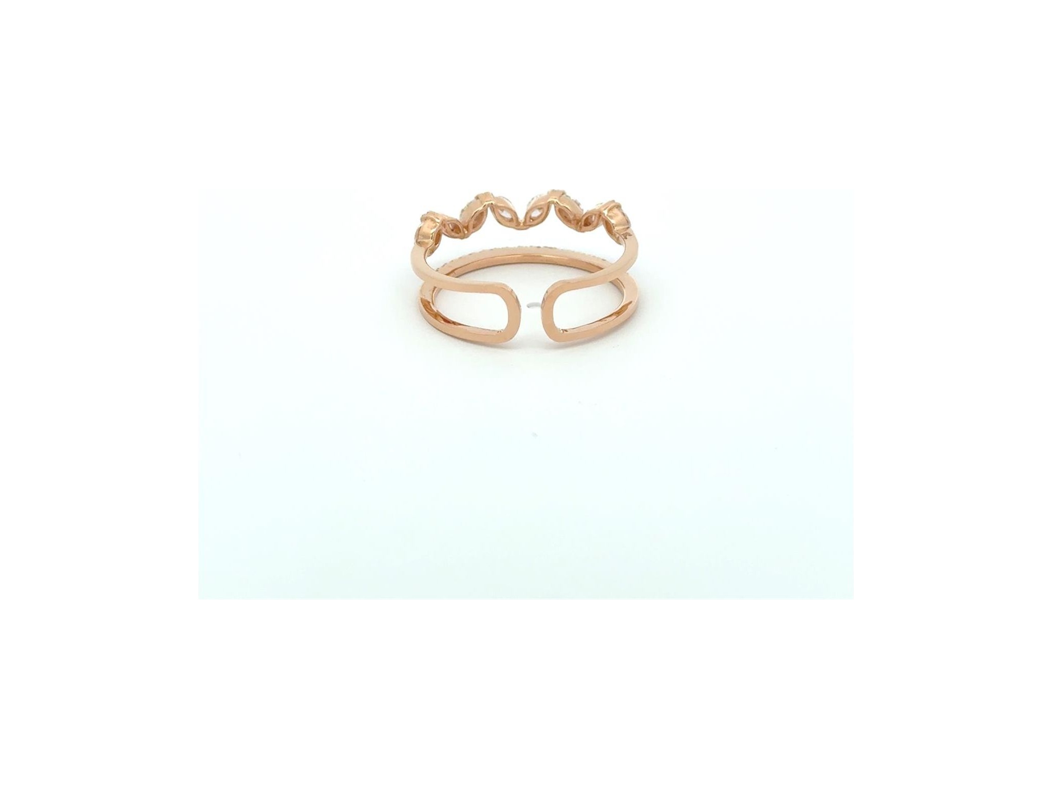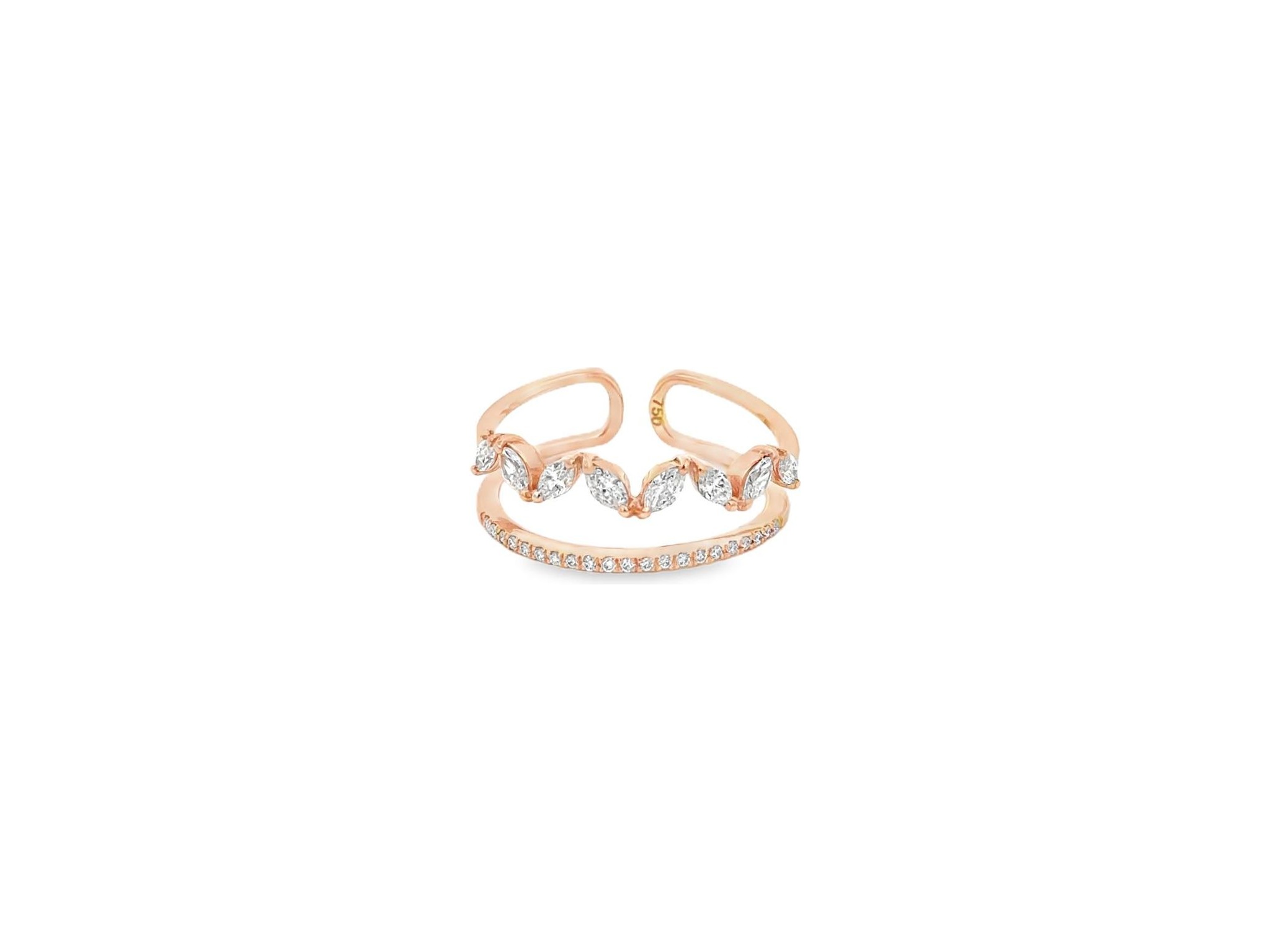 18K Rose Gold Double Row Ring with Natural Marquise and Round Diamonds – Classic and Wave Design