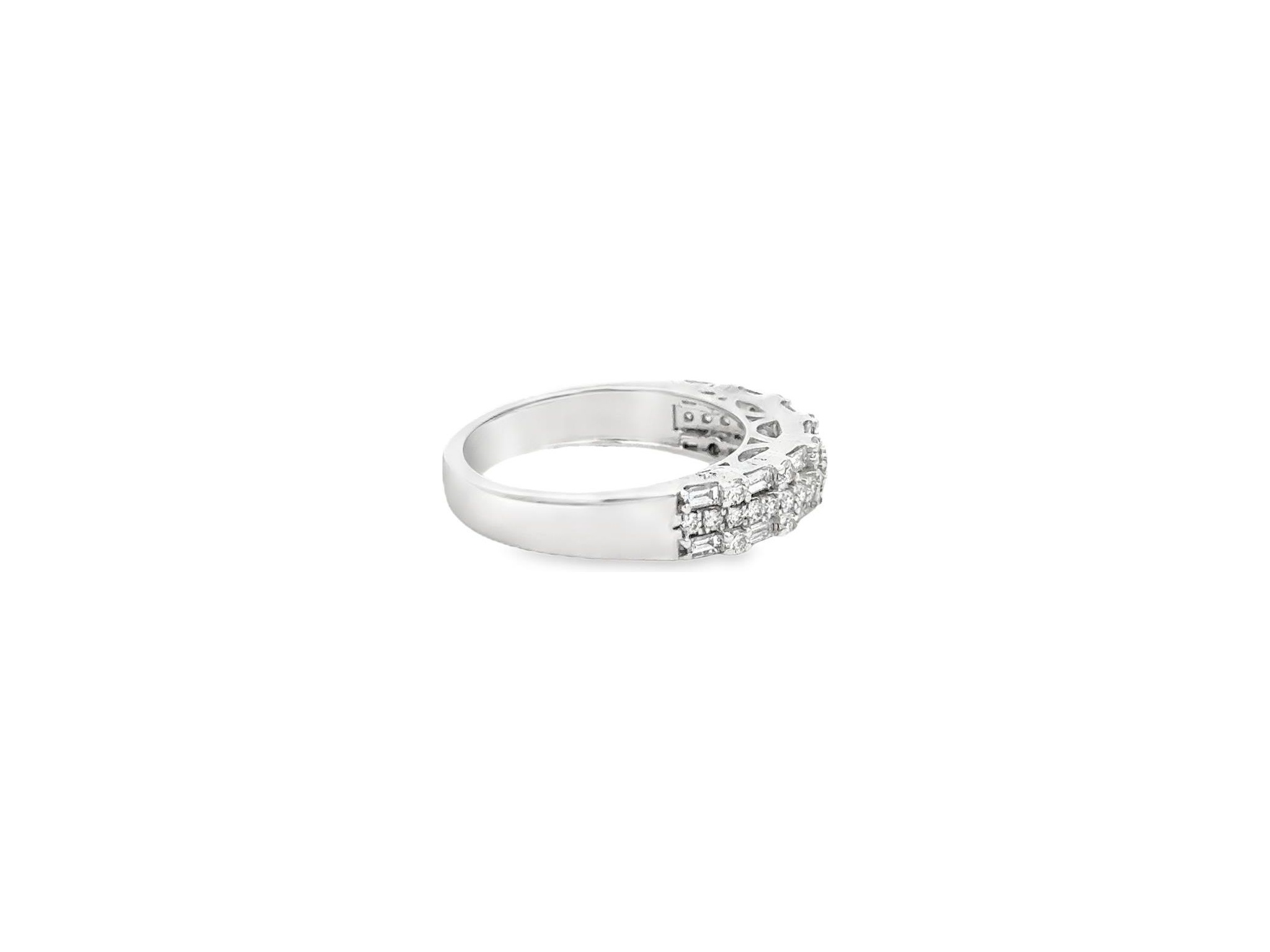 18K White Gold Double-Row Band Ring with Natural Round and Baguette Diamonds