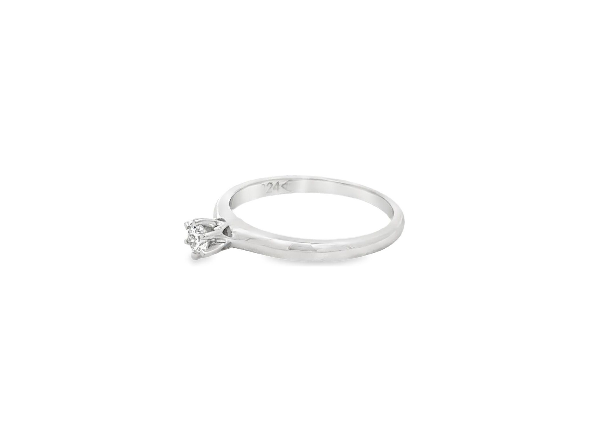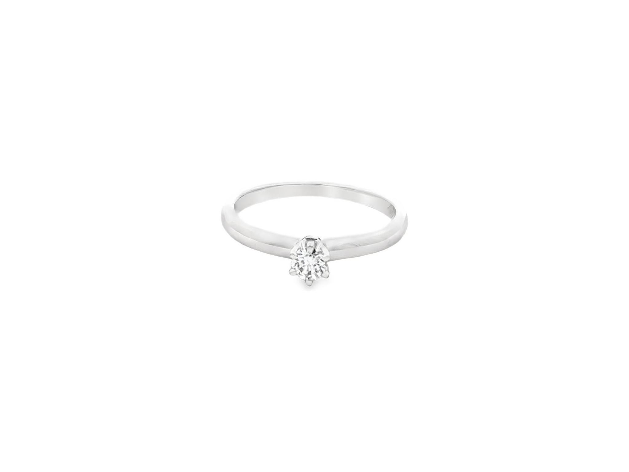 18K White Gold Classic Solitaire Ring with Natural Round Diamond in 6-Prong Setting