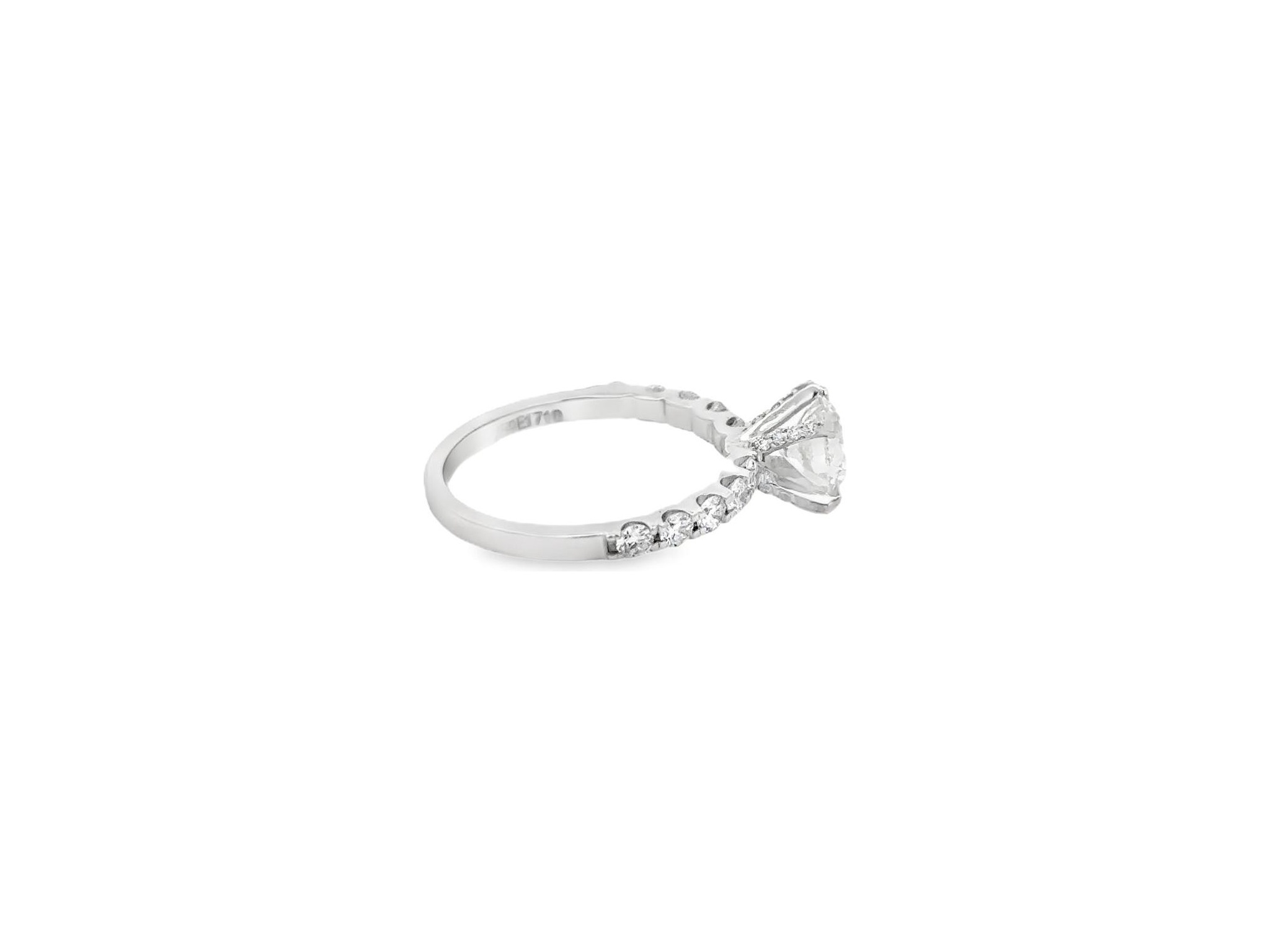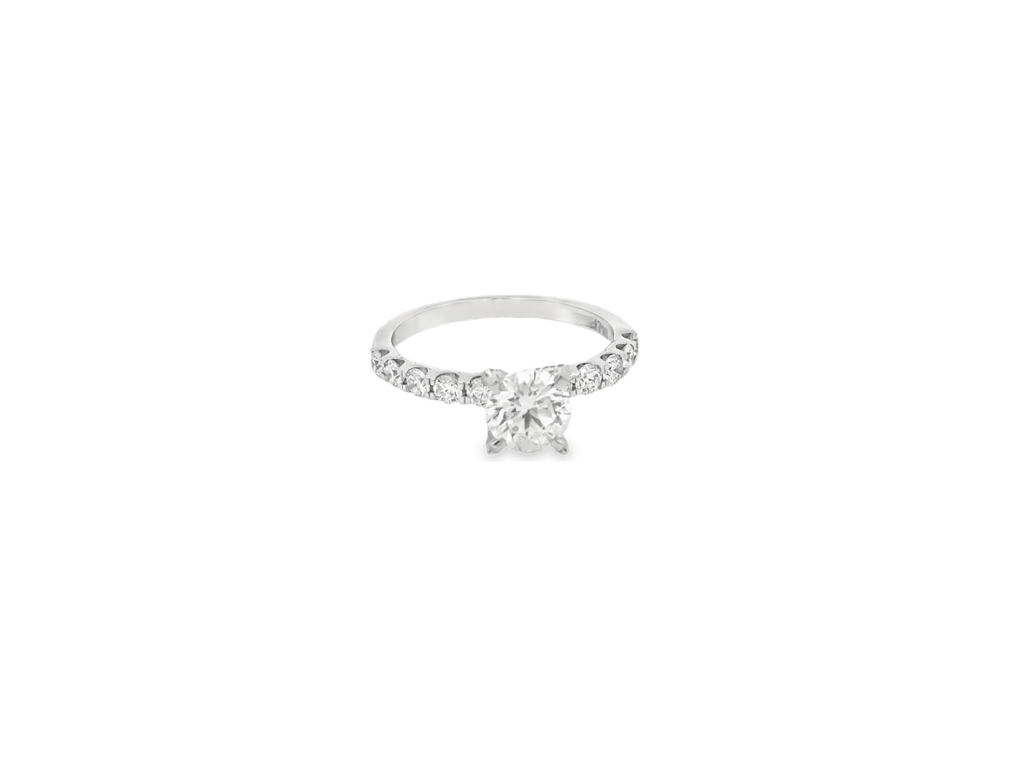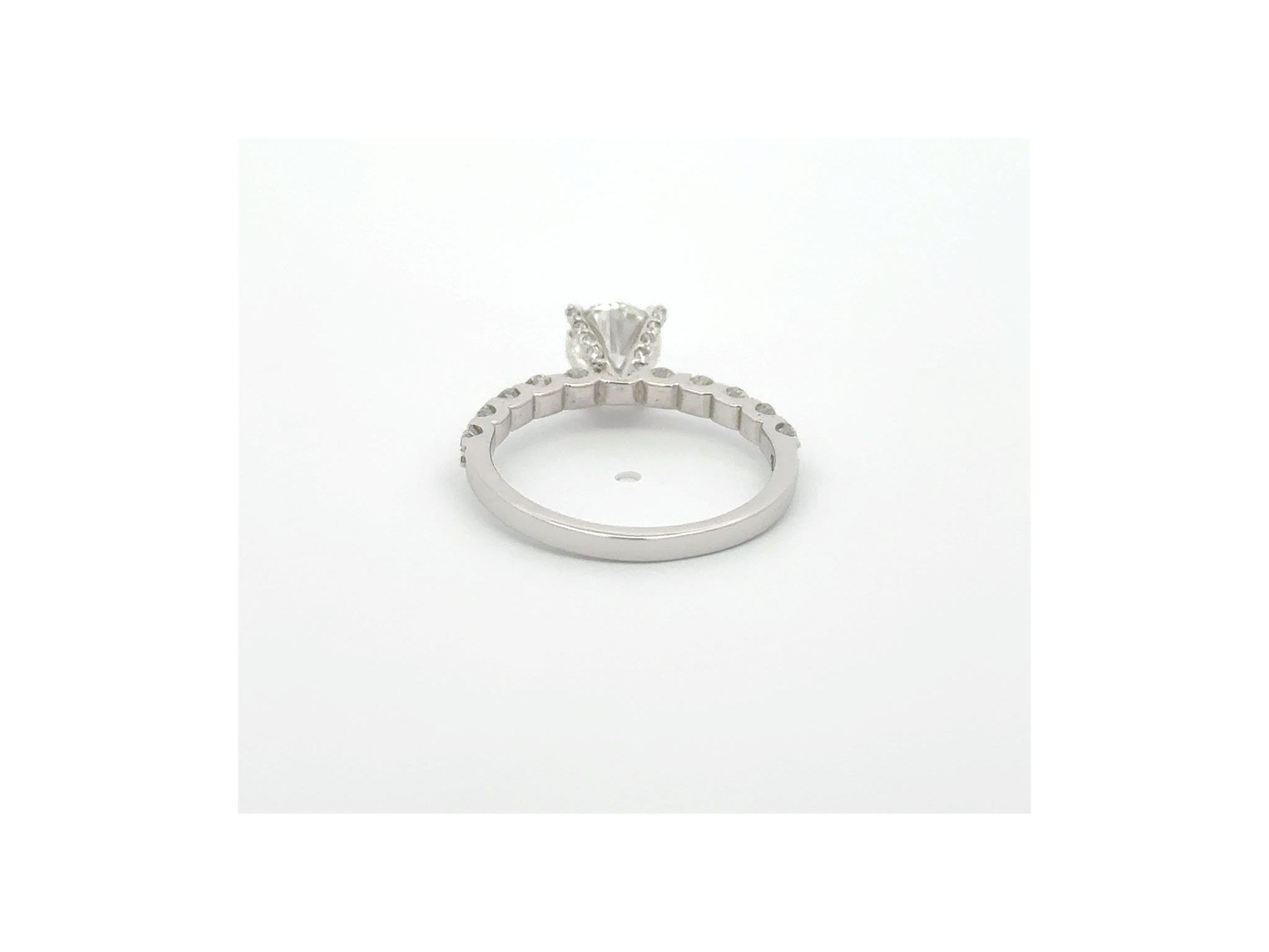 18K White Gold Solitaire Ring with GIA Certified Natural Round Diamond and Diamond-Set Band