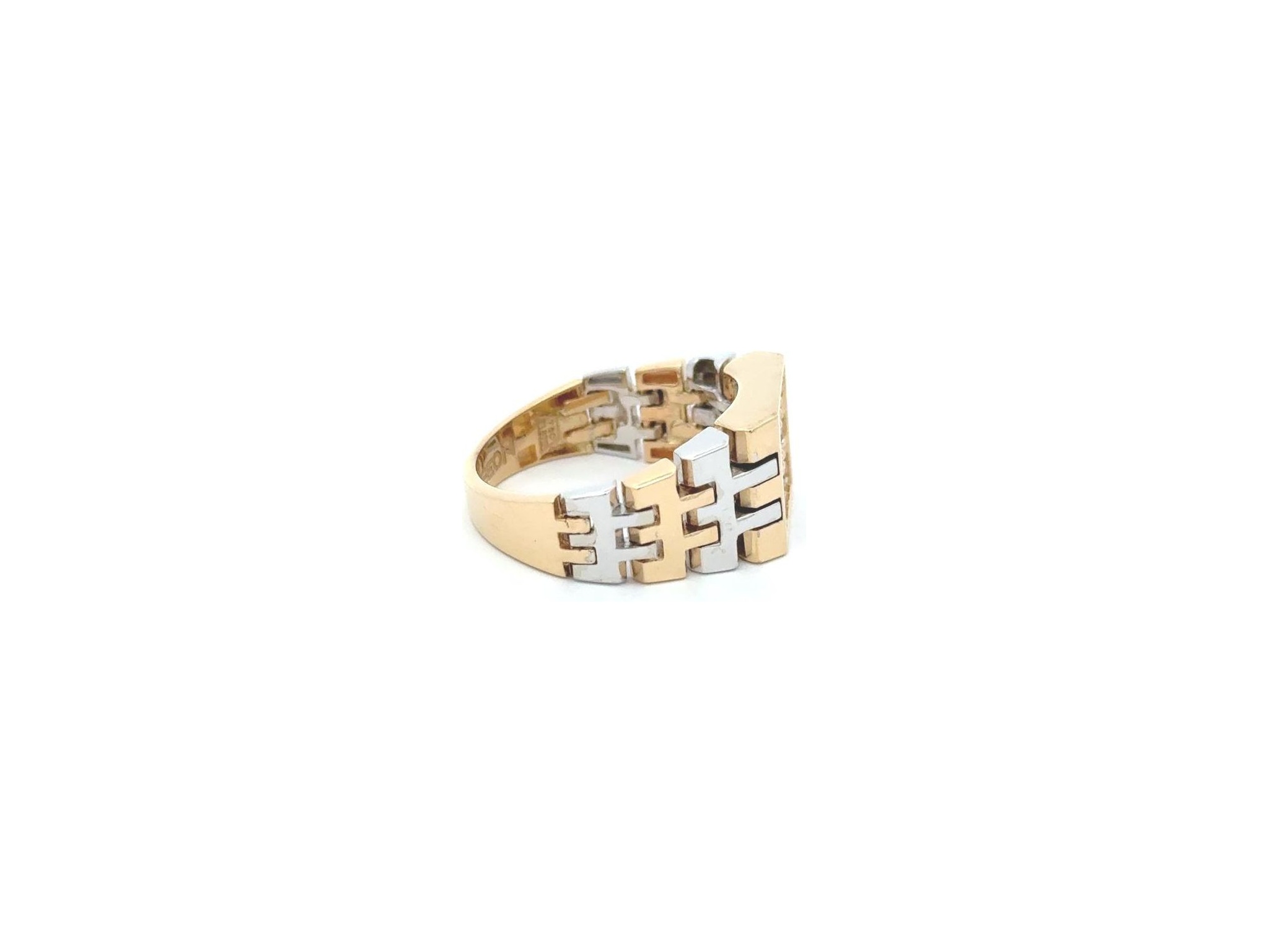 18K Two-Tone (Yellow and White Gold) Men's Ring with Natural Round Diamonds and Flexible Shank