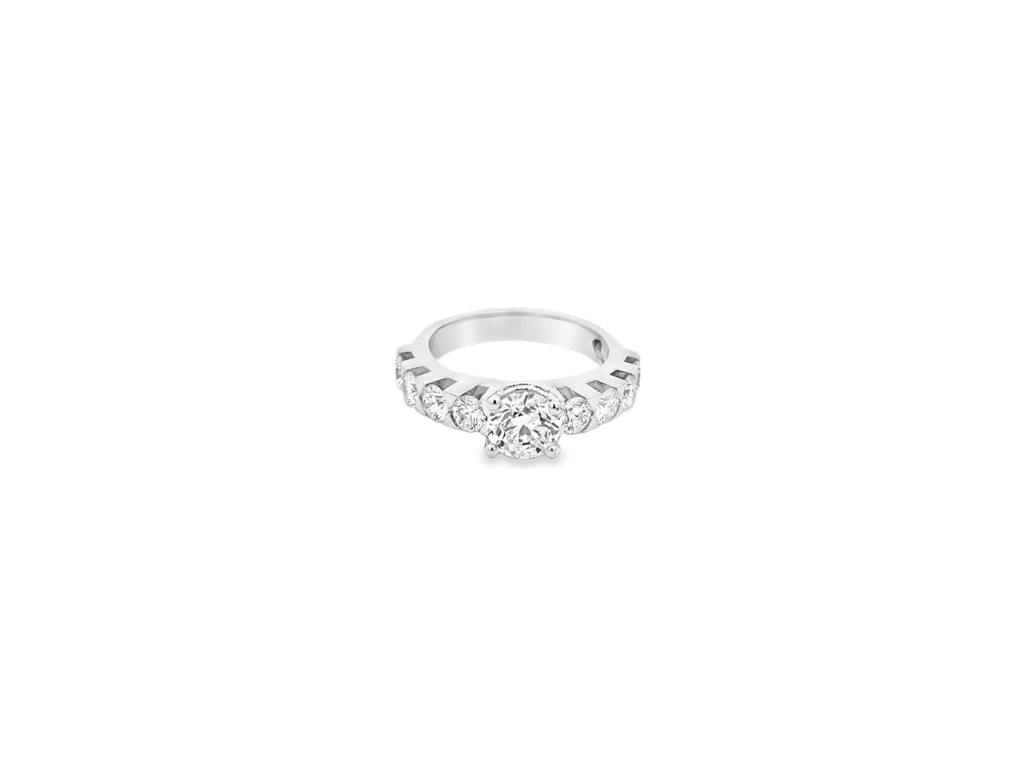 18K White Gold Engagement Ring with GIA-Certified Natural Center Diamond and Side Diamonds