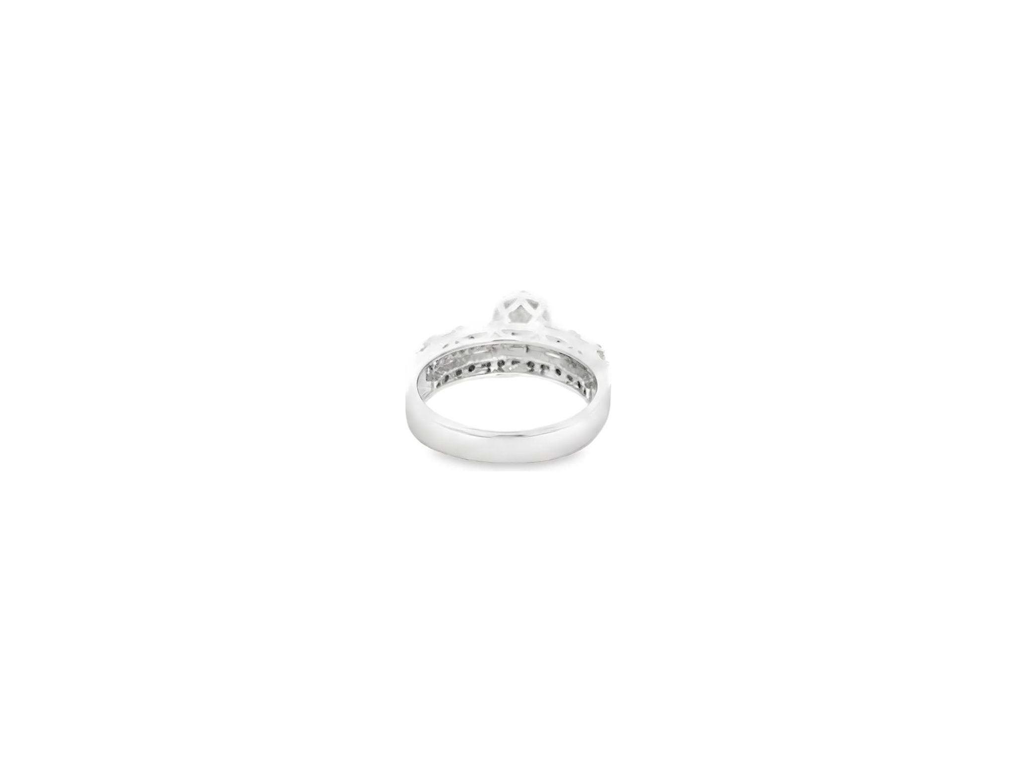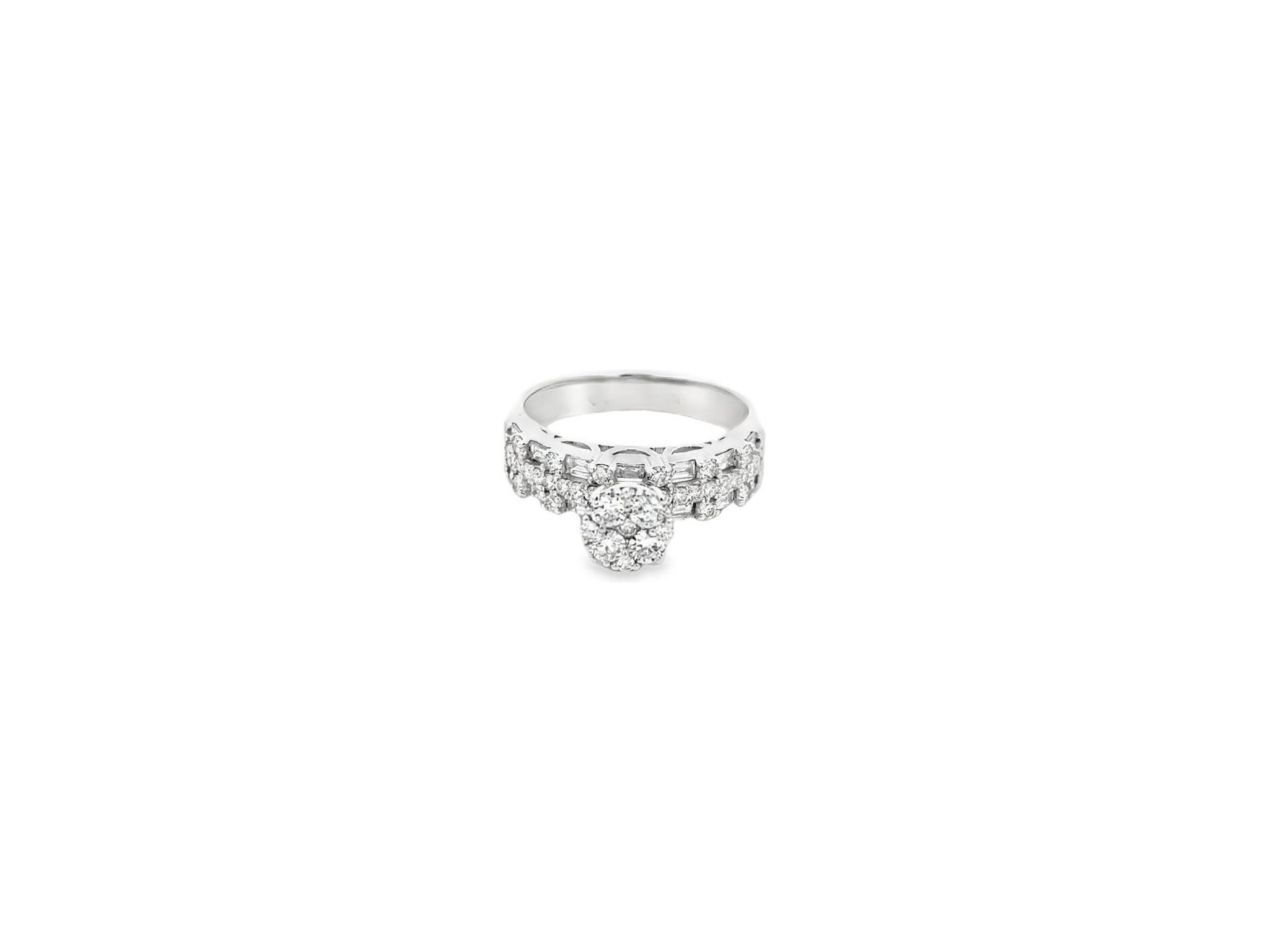 18K White Gold Solitaire-Style Ring with Natural Round and Baguette Side Diamonds