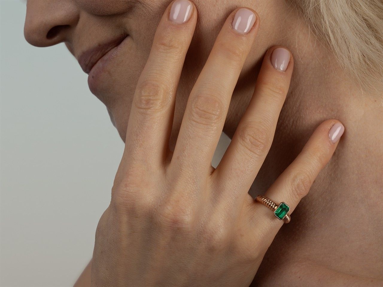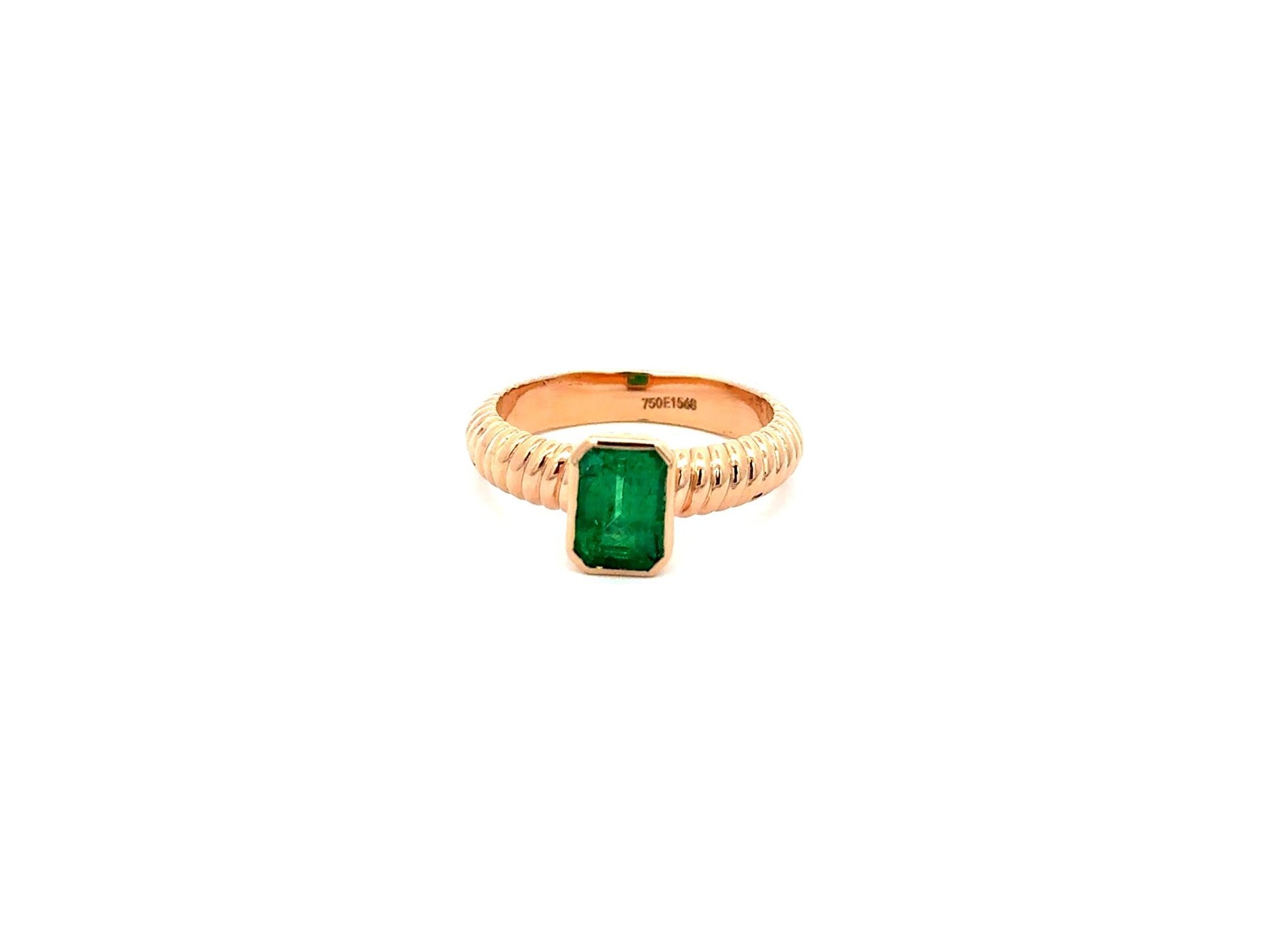 18K Rose Gold Ring with Natural Emerald-Cut Emerald in Bezel Setting