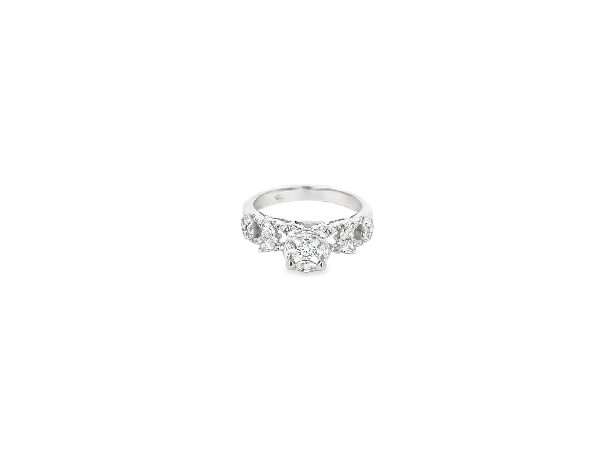 18K White Gold Artistic Ring with Natural Marquise and Round Diamonds – Cluster Design
