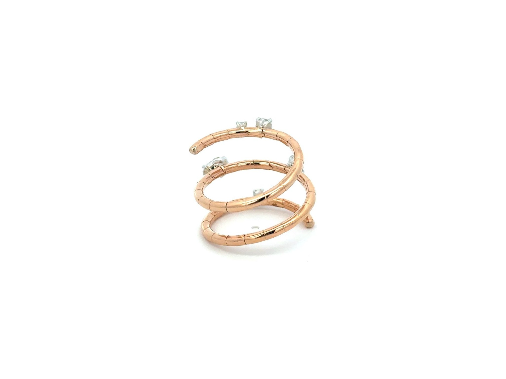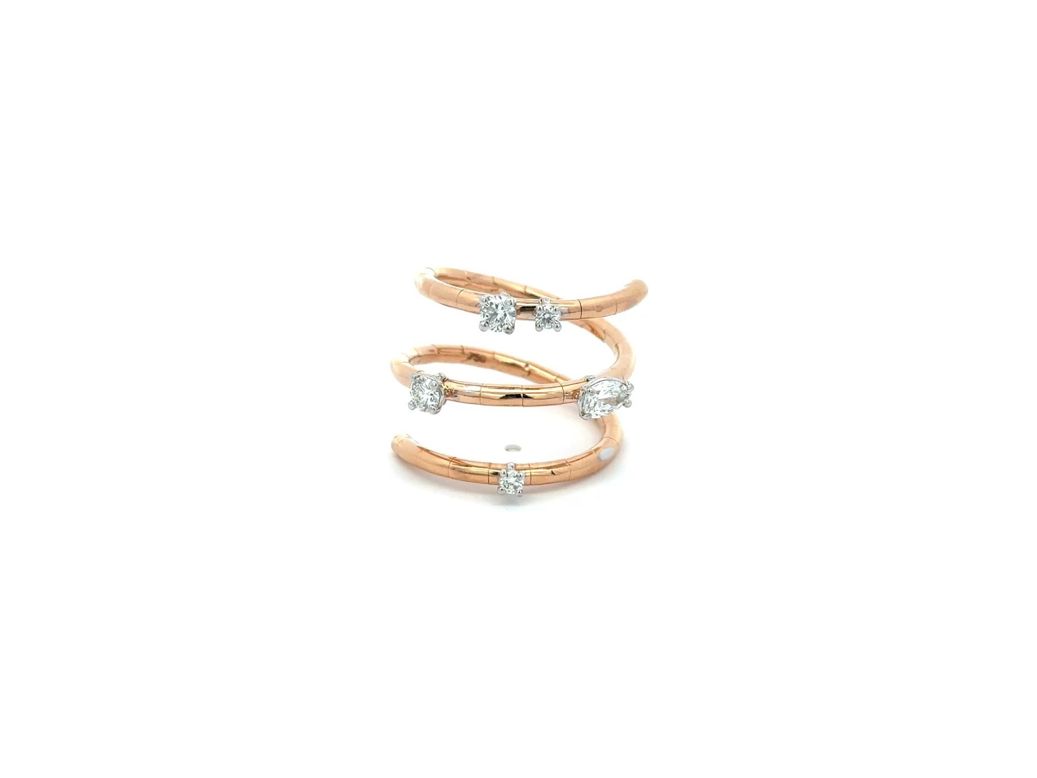 18K Rose Gold Ring with Natural Round and Pear-Shaped Diamonds on a Twist Band
