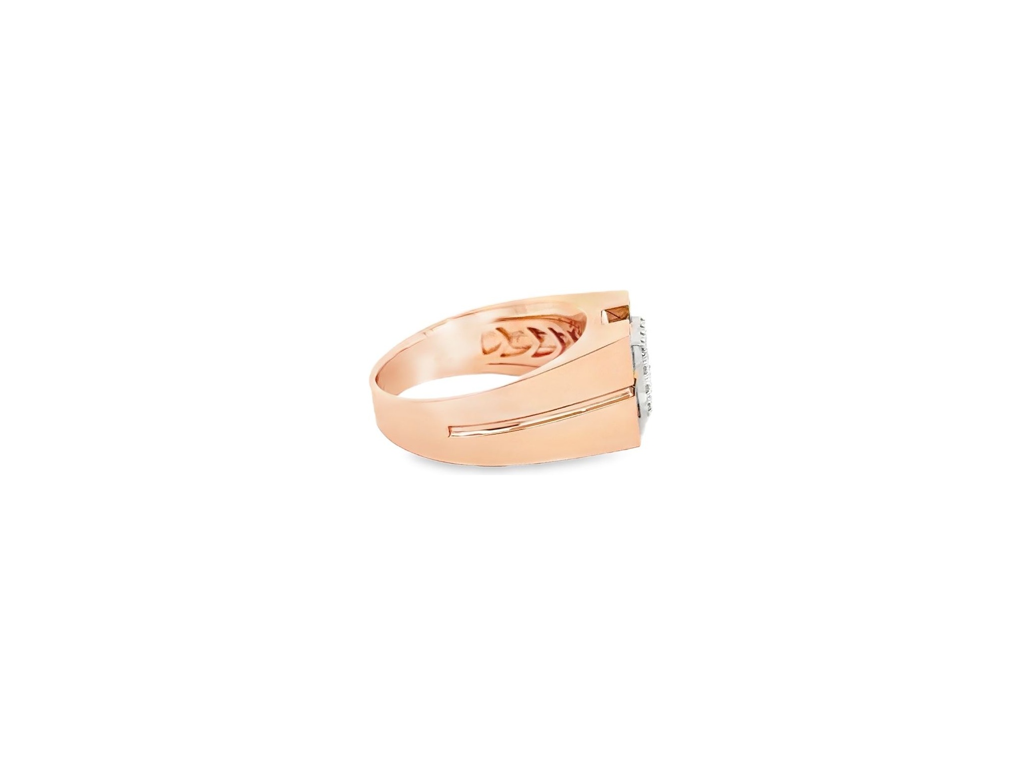 18K Rose Gold Men's Ring with Pavé-Set Natural Round Diamonds in Geometric Design