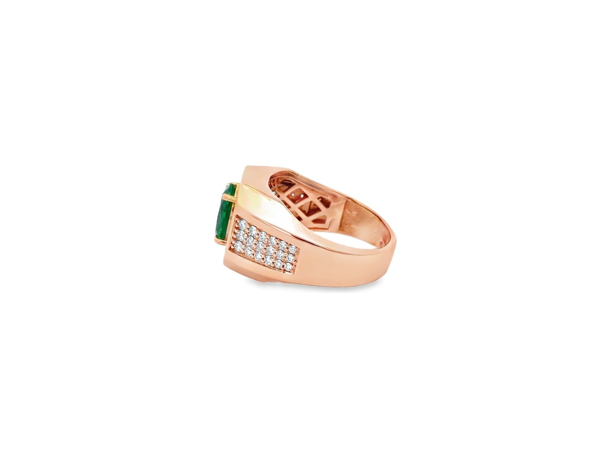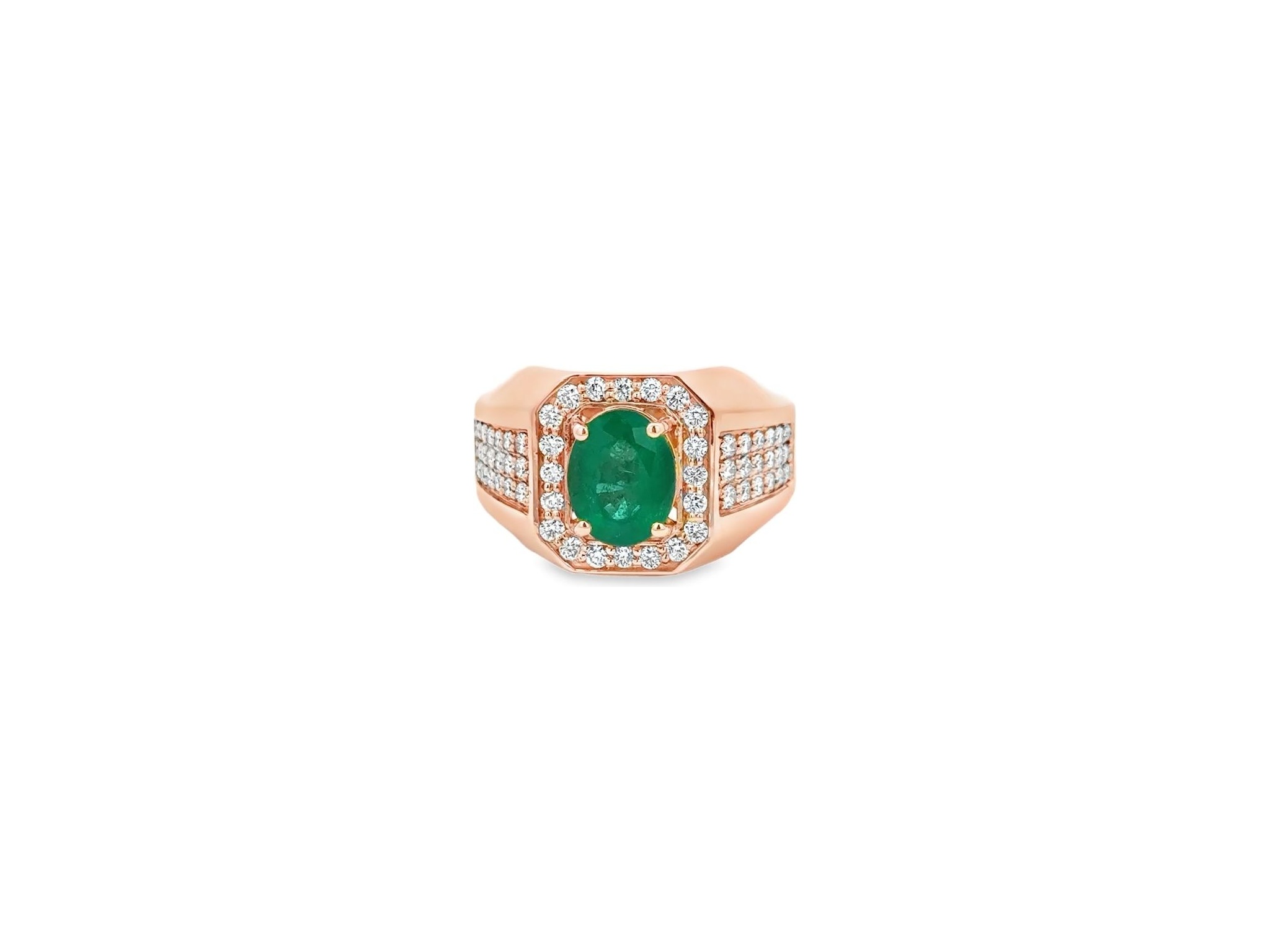 18K Rose Gold Men's Ring with Natural Oval Emerald and Natural Round Diamond Halo
