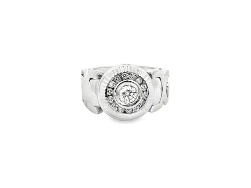 18K White Gold Men's Solitaire Ring with Bezel-Set Natural Round Diamond and Halo in Watch-Inspired Design