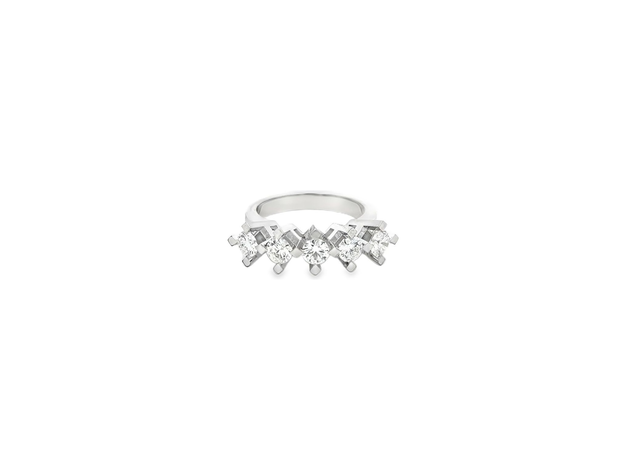18K White Gold Ring with Five Natural Round Diamonds in Individual Four-Prong Settings
